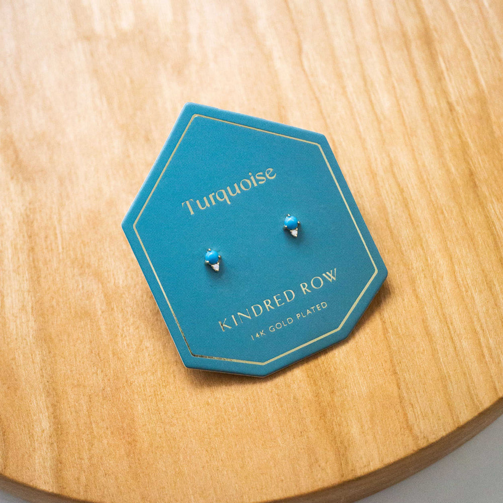Elevate your accessory game with these stunning Turquoise Gemstone Stud Earrings. Featuring a tiny 3mm turquoise stone complemented by a sparkling 1.5mm CZ stone, they create a beautiful total height of 5mm. Crafted with 14k gold plating, these earrings exude elegance and sophistication. Each pair is thoughtfully packaged on a chic 2.5" tall gold foil colour earring card, making them the perfect gift or a treat for yourself. Add a touch of colour and refinement to any outfit today!