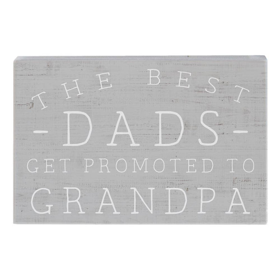 Add some humor to your dad's or grandpa's home decor with the Best Dads - Small Talk Rectangle. This white finished wall art features the phrase "the best dads get promoted to grandpa" and is proudly designed, printed and handcrafted in the USA.