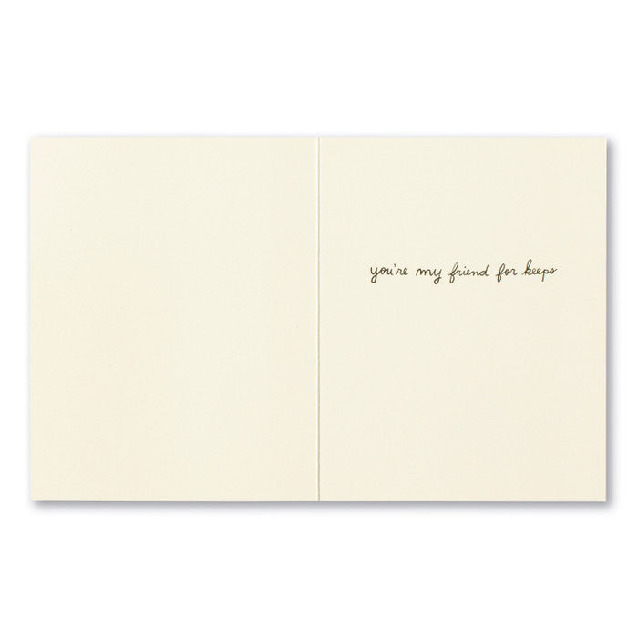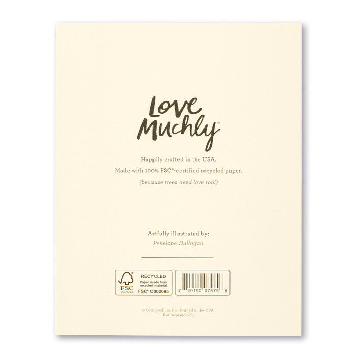 Celebrate the essence of friendship with our Love Muchly Friendship Card, illustrated by Penelope Dullaghan. This card features a whimsical design that beautifully pairs with a heartfelt message: You’re my friend for keeps. Printed in the USA using eco-friendly soy inks and FSC®-Mix certified paper, it’s perfect for any occasion. The card measures 4.25”W x 5.38”H and comes with a cream envelope, adding a touch of elegance. Brighten someone's day and strengthen your bond with this charming keepsake.