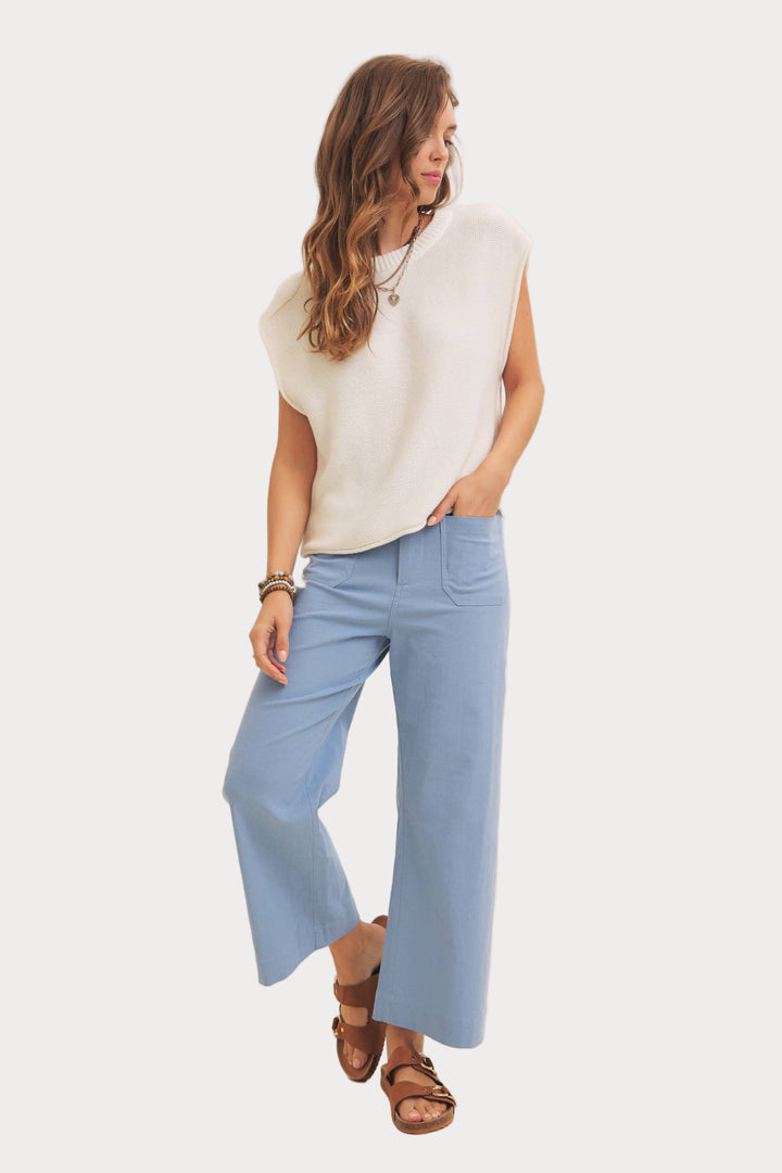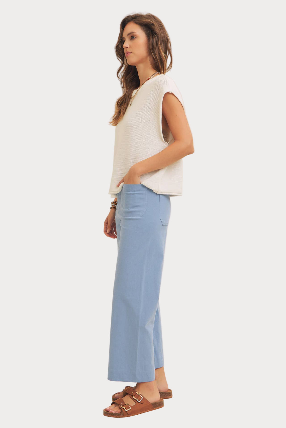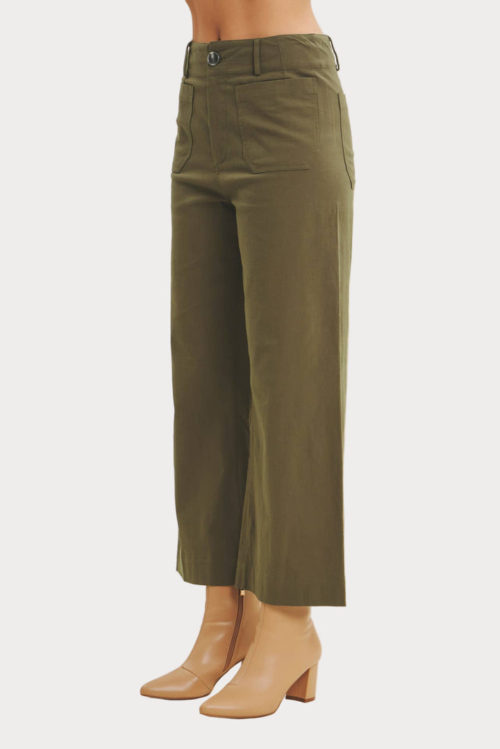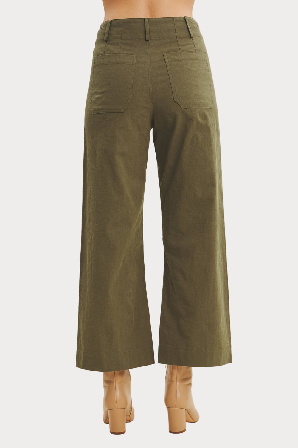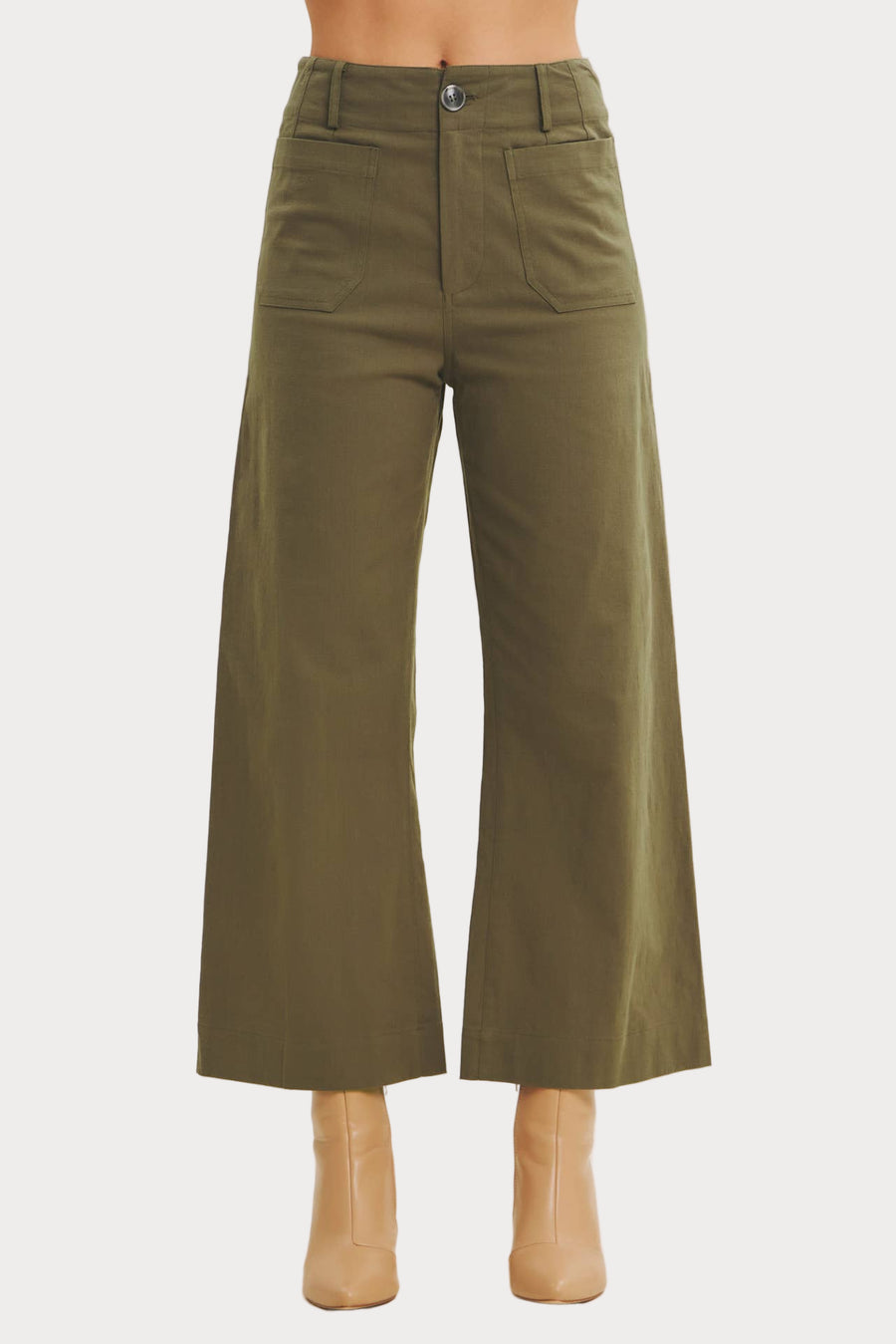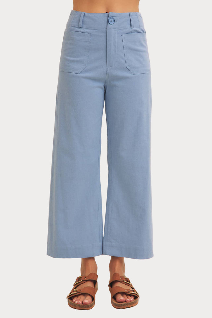High Waisted Wide Leg Crop Pants | Linen Blend