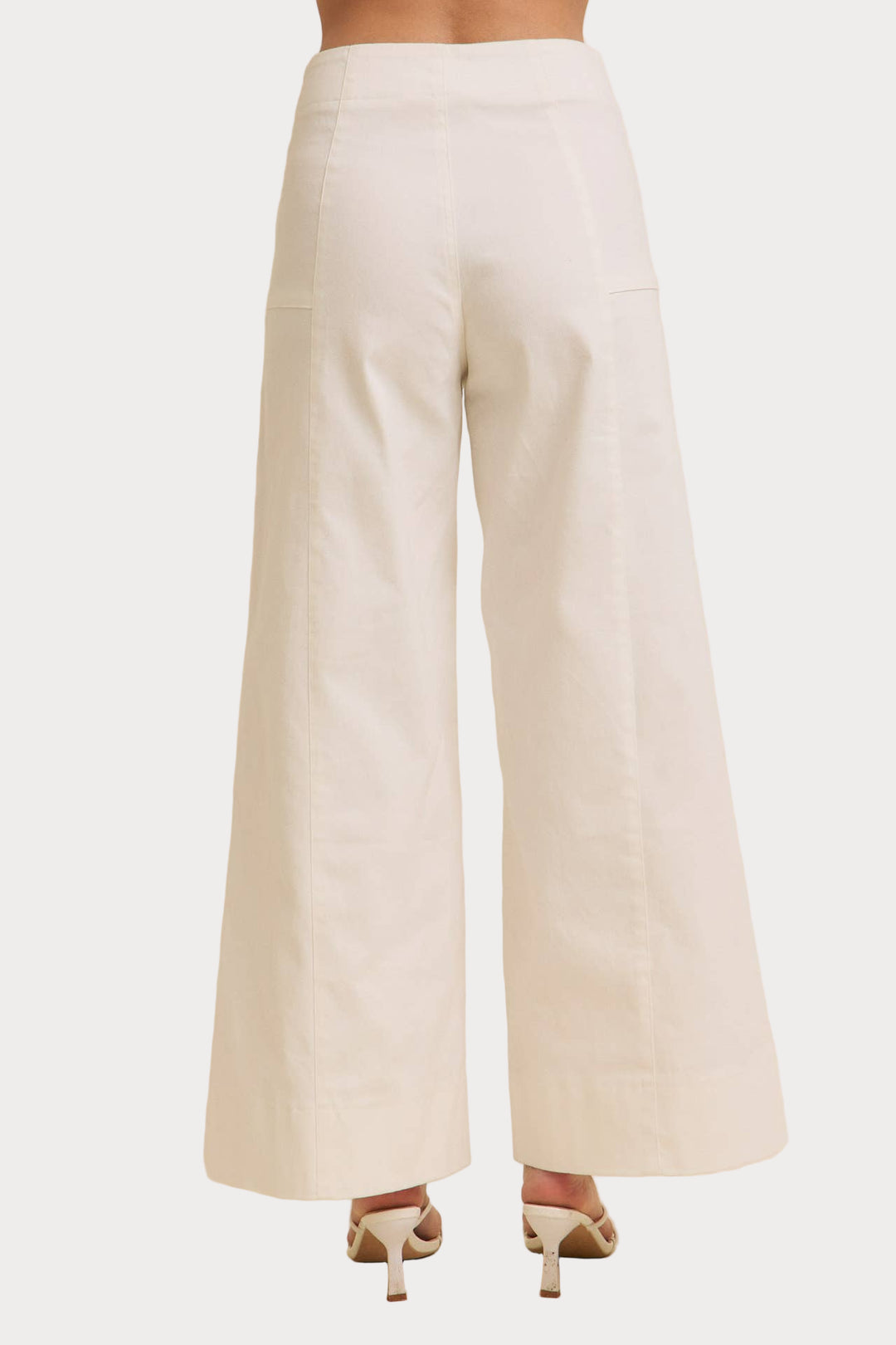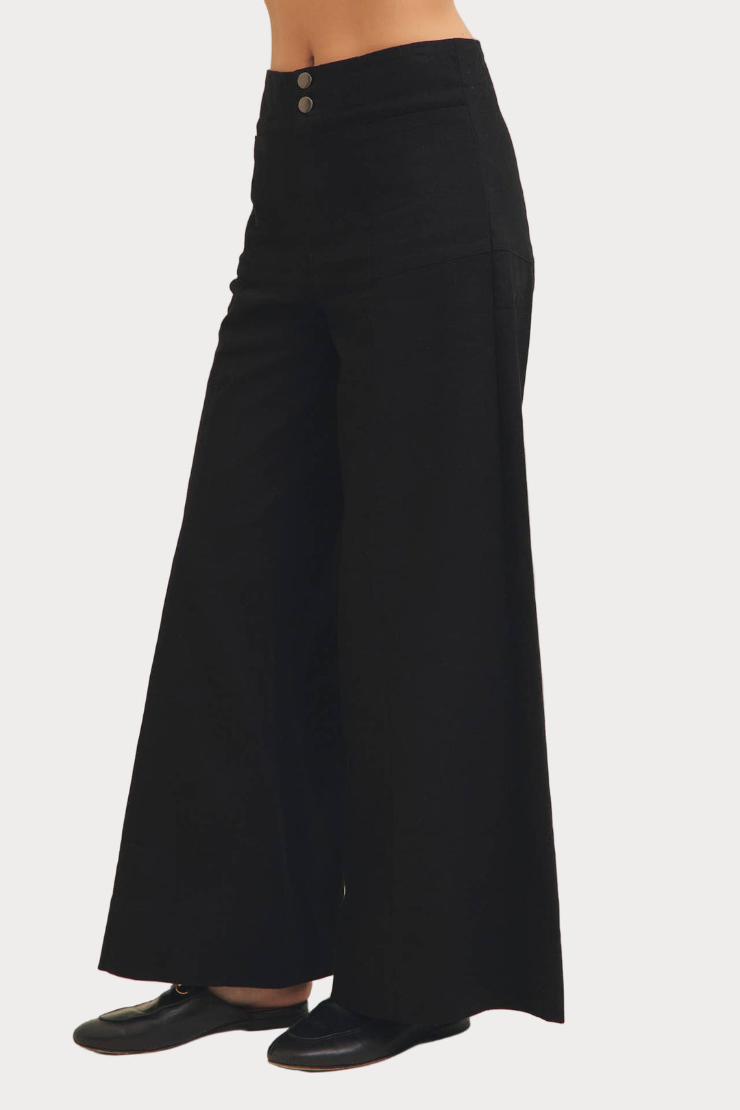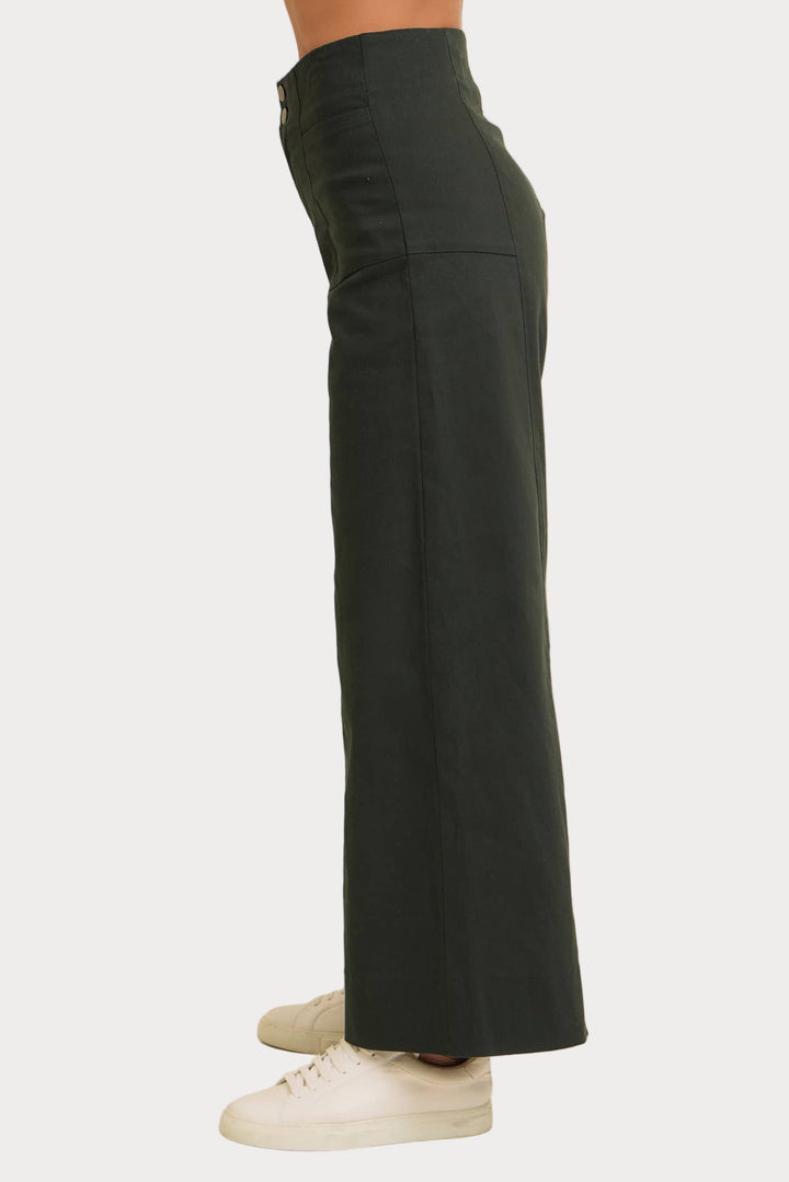 Introducing our Flattering Wide Leg Full-Length Stretchy Pants, style A1402P. Designed to turn heads, these pants feature a chic two front button closure and convenient pockets, combining fashion with functionality. Crafted from a soft blend of 97% cotton and 3% spandex, they provide comfort and ease of movement. The model stands at 5'8" and wears a size SMALL; check our size chart for your perfect fit. Elevate your wardrobe with these essential pants.