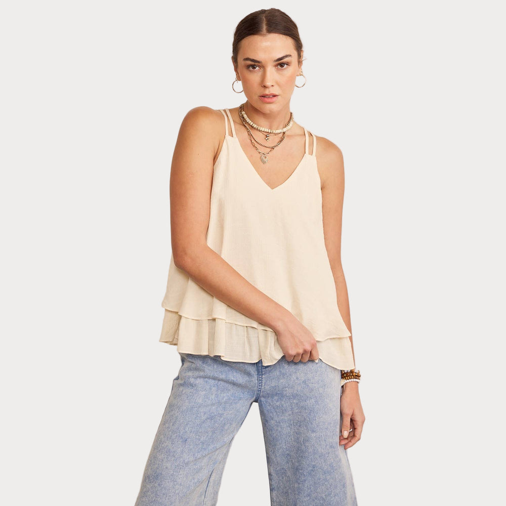 Double Strap Layered Cami | Cream V-Neck Tiered Tank Top