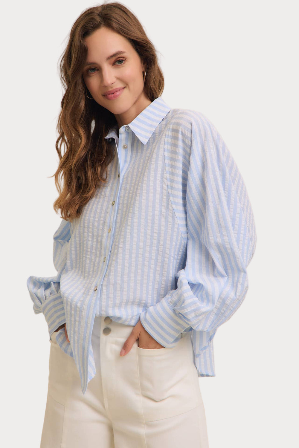 Striped Balloon Sleeve Blouse | Women's Relaxed Fit Button-Up