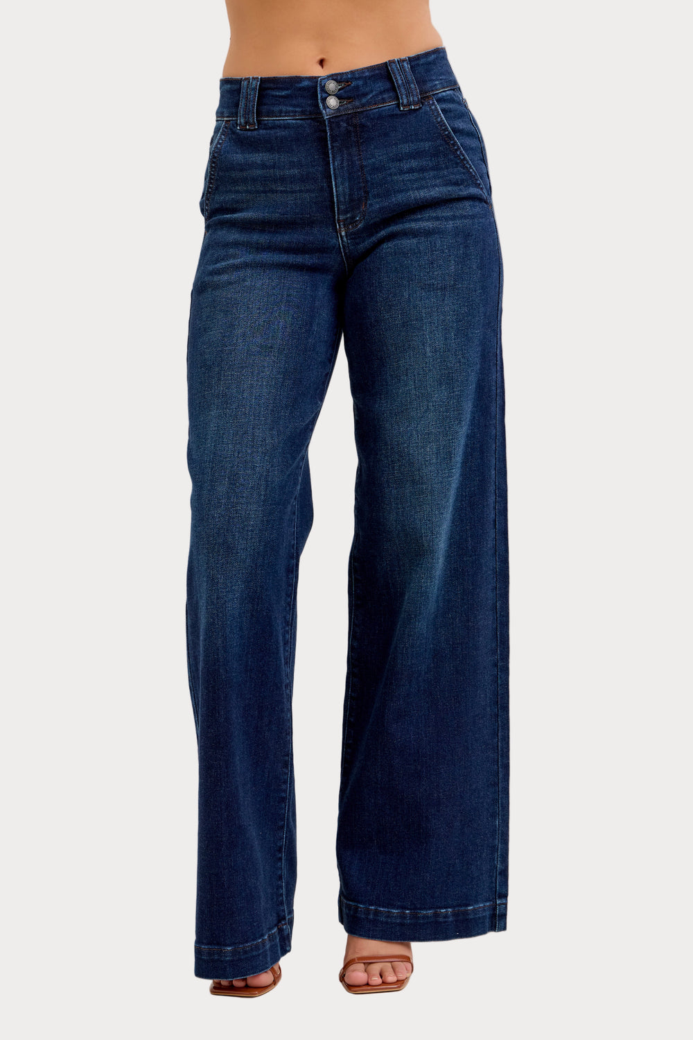 Judy Blue high waist wide-leg trouser jeans in dark wash denim