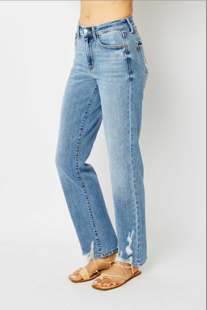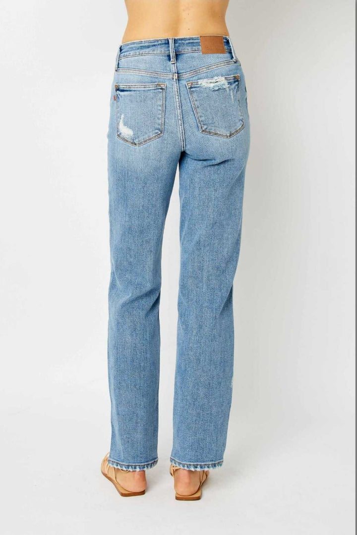 Add a laid-back edge to your everyday look with these Judy Blue High Rise Distressed Straight Jeans. Designed in a light wash with just the right amount of distressing, these jeans blend comfort and style effortlessly. Crafted with soft, stretchy denim for all-day wear, the high-rise waist and straight-leg silhouette make them flattering, timeless, and endlessly versatile.