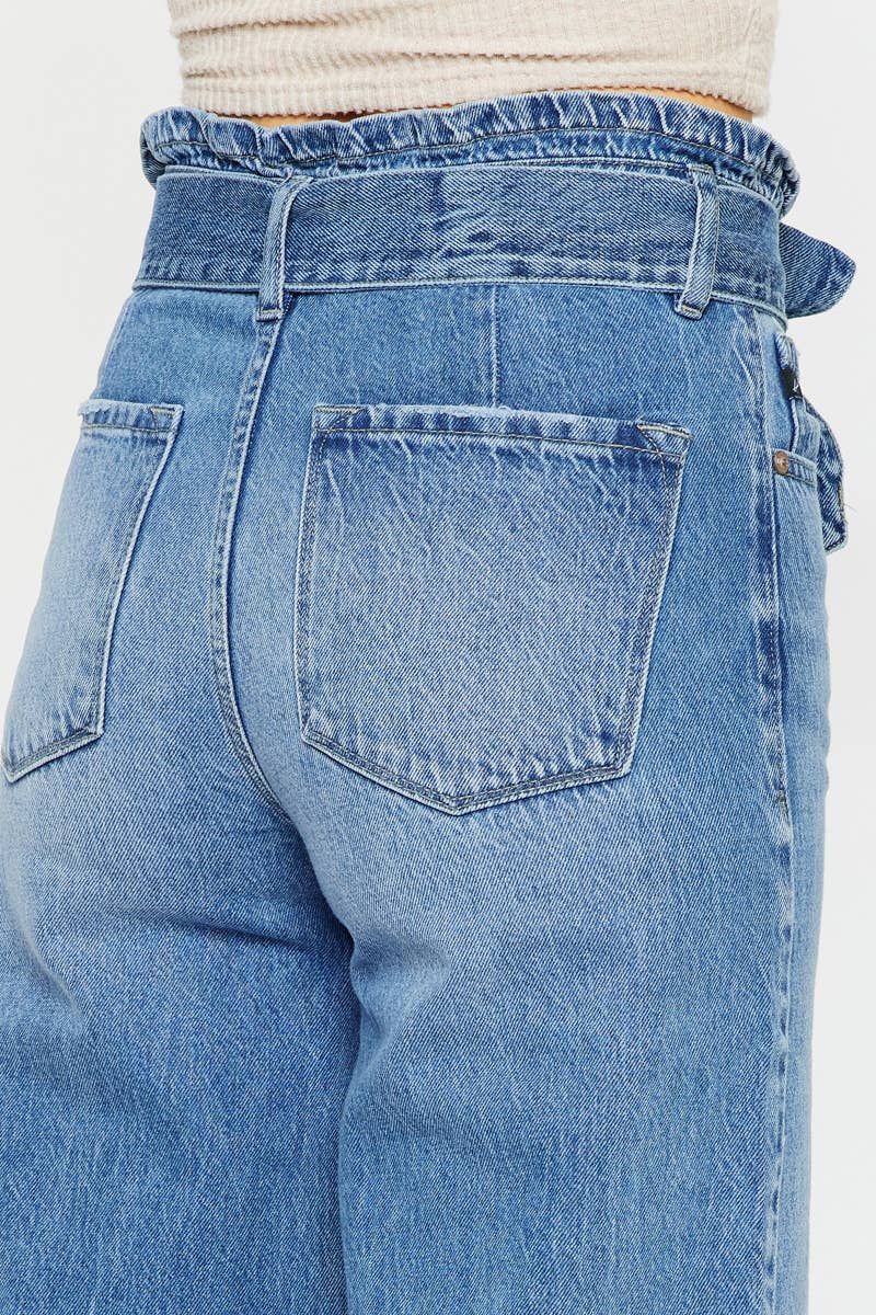 Aroly Ultra High Rise Belted Paperbag Wide Leg Jeans