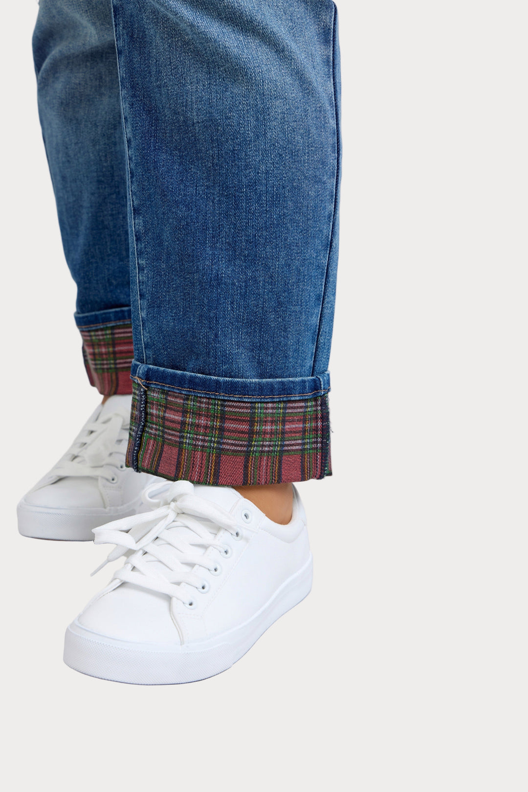 Plaid Cuff Boyfriend Jeans | Plus