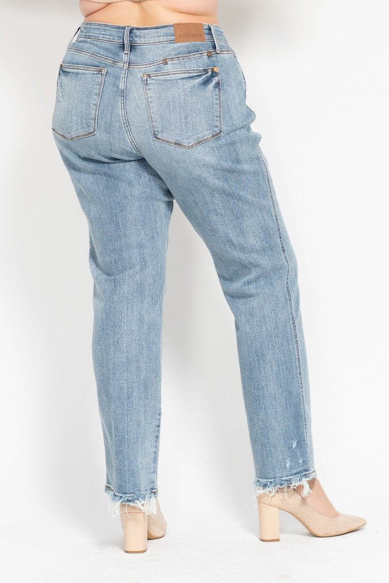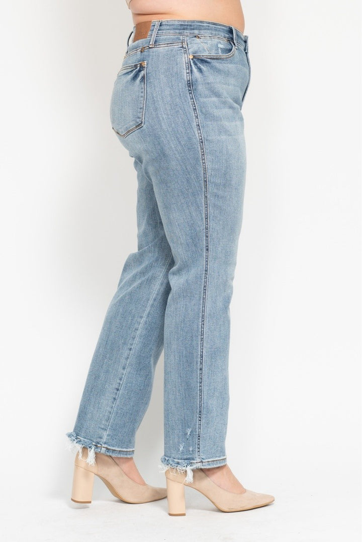 Meet your new favorite pair—these Judy Blue Dad Jeans with Cell Phone Pocket are made for comfort, confidence, and convenience. Designed with a flattering high rise and relaxed straight leg, they offer an easy, laid-back fit while keeping a timeless denim look. The hidden cell phone pocket adds a touch of practicality, while the light wash and subtle distressing make them a stylish go-to for every season.