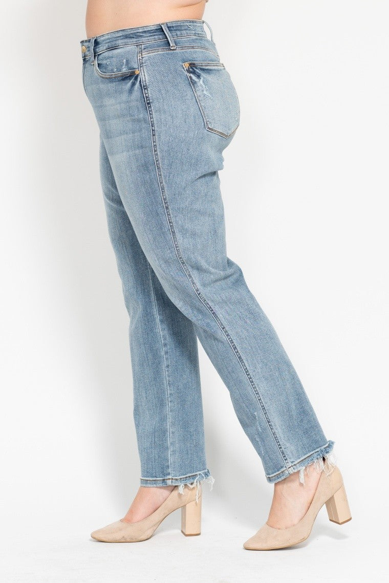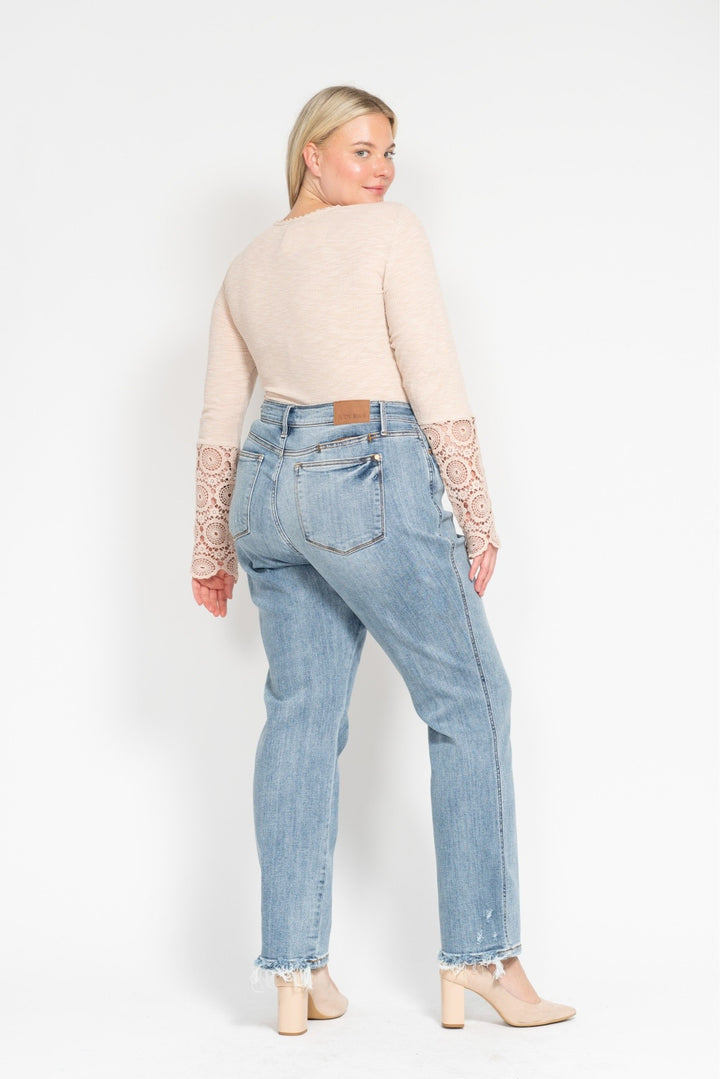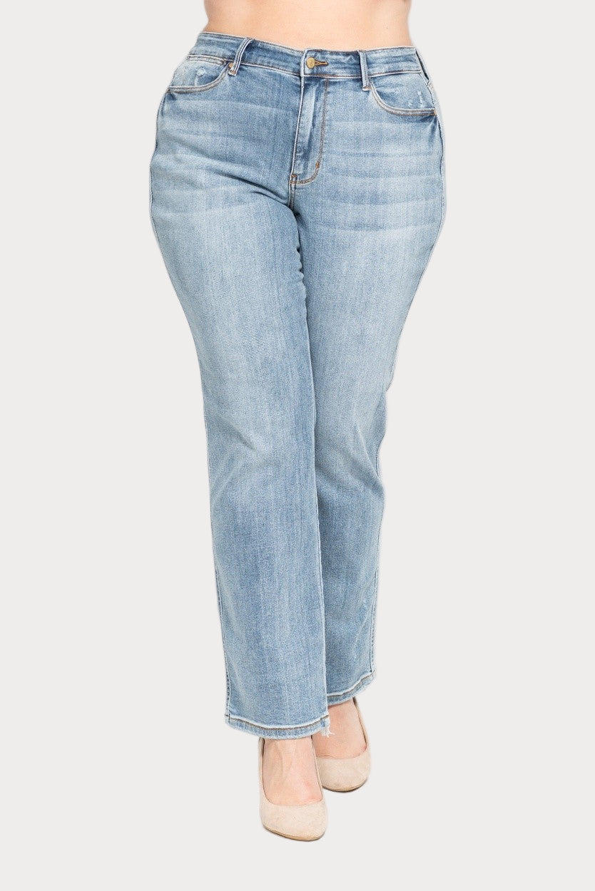 Judy Blue plus size dad jeans with hidden cell phone pocket and light wash