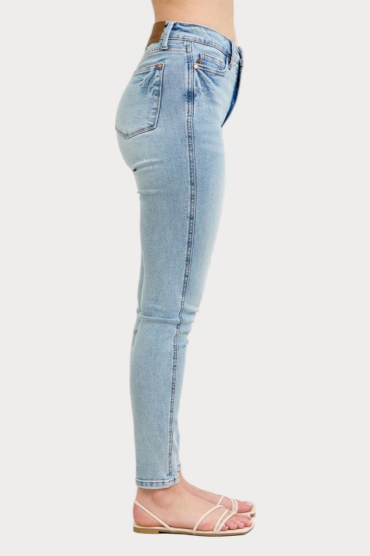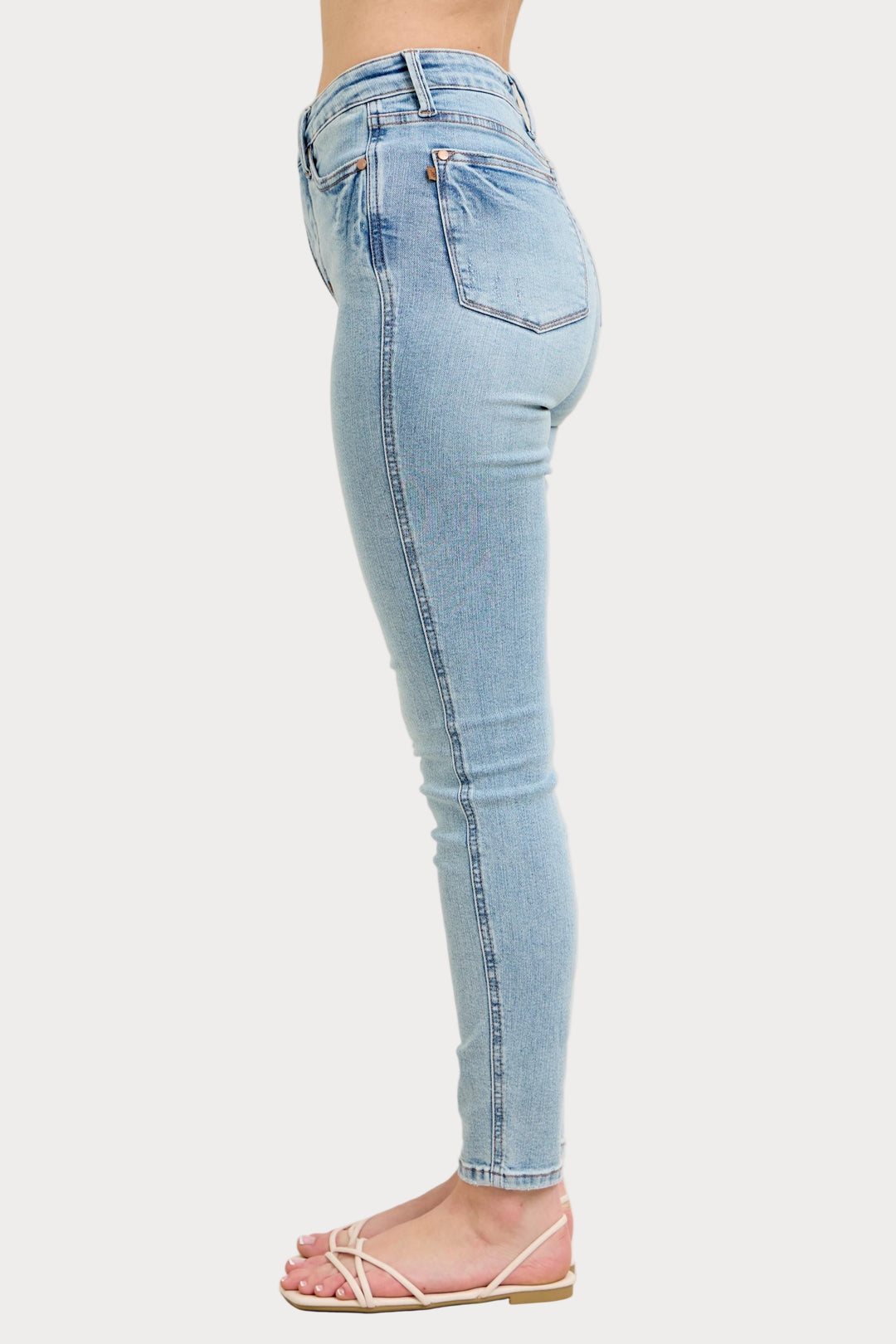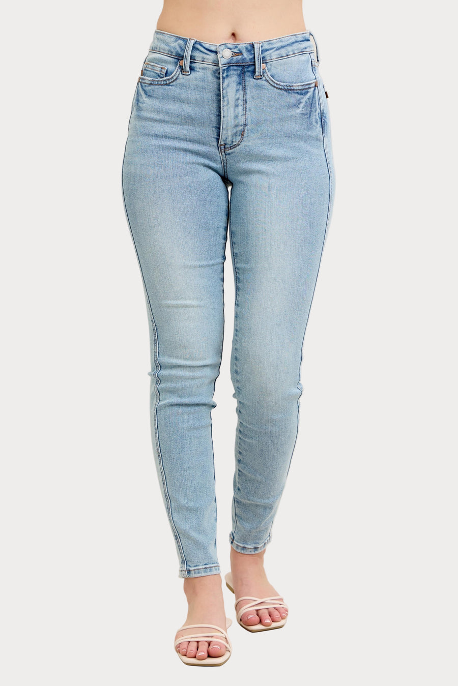Judy Blue tummy control mid rise skinny jeans in light wash denim