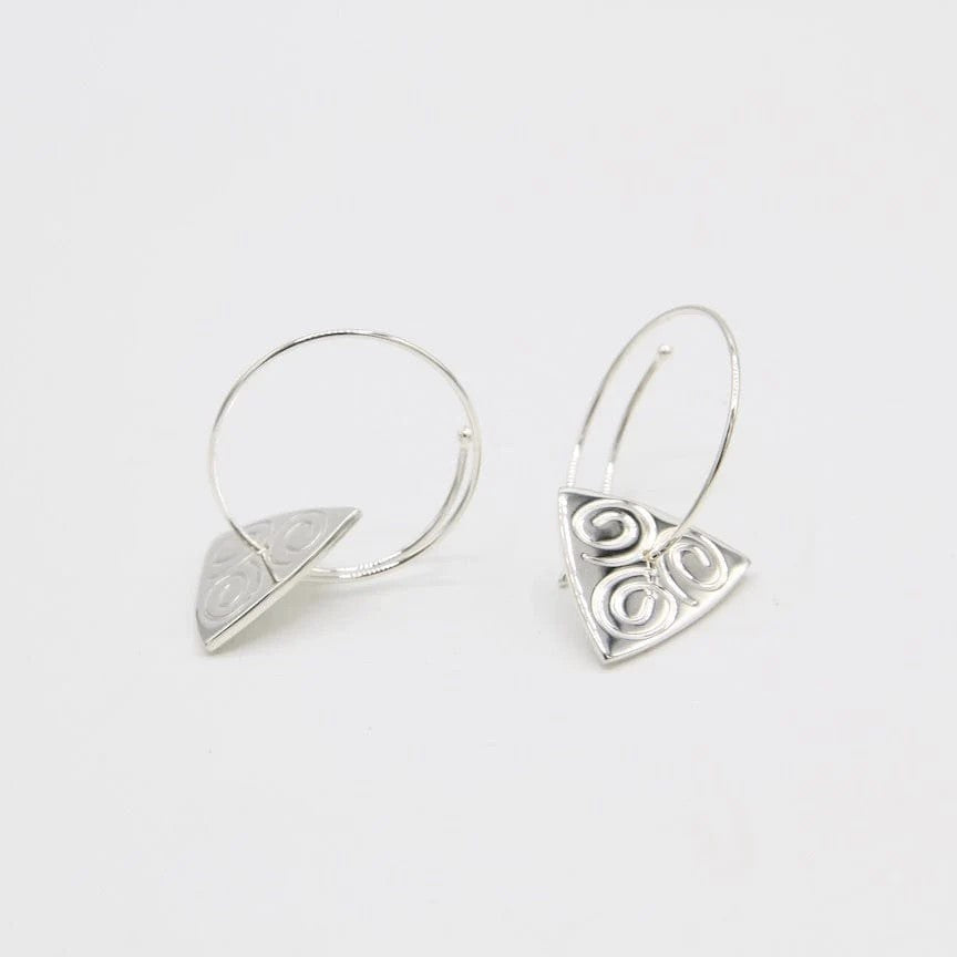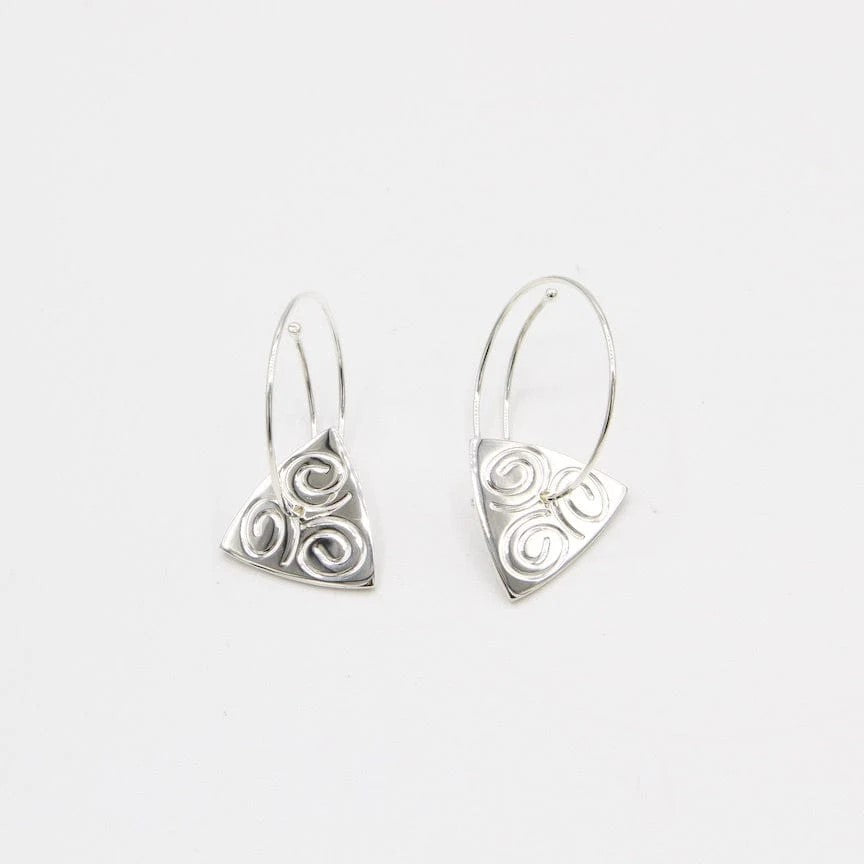 Spiral Hoop w/ Triangle Drops Etched w/ Swirls