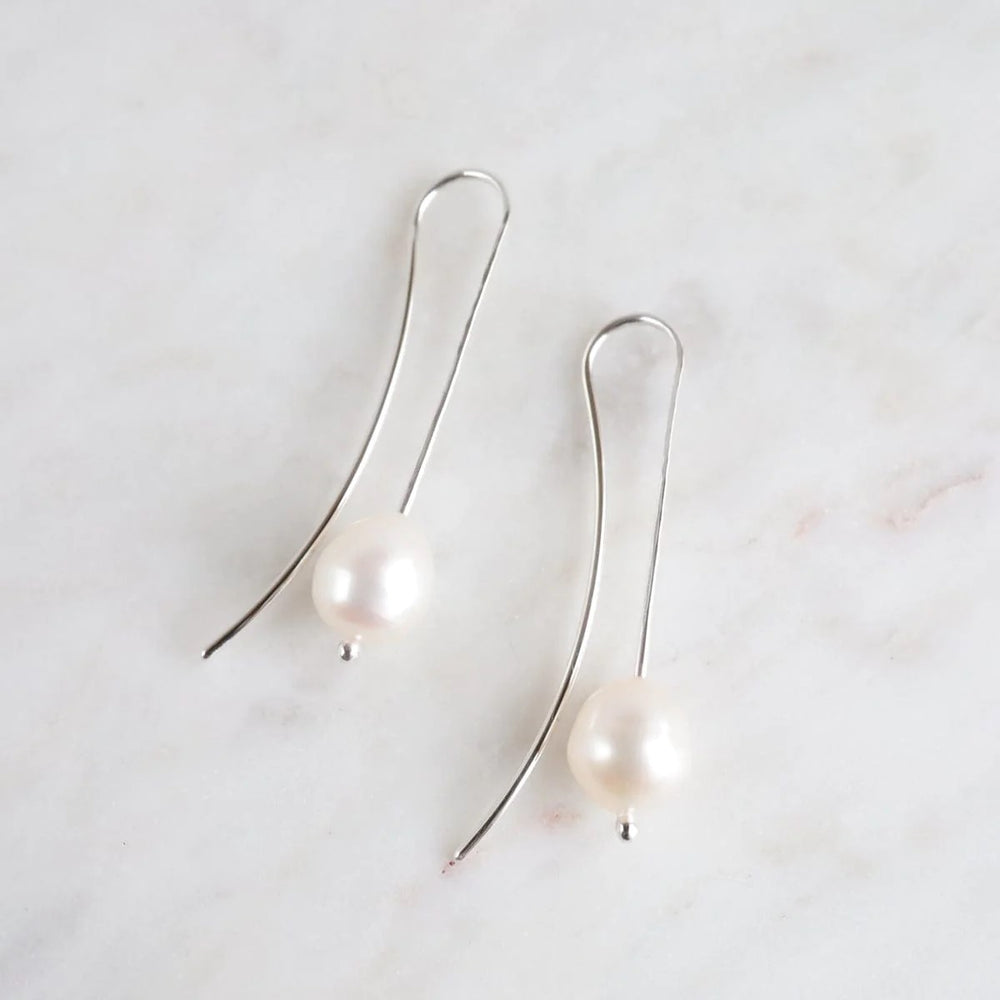 Refined and timeless, the Hammered Wire Drop Earrings with Pearl by Jeff Gray Jewelry are a graceful blend of modern design and classic elegance. Handcrafted in Bennington, Vermont, each earring features a luminous freshwater pearl suspended from a hand-forged sterling silver wire with a delicate hammered texture that shimmers in the light.