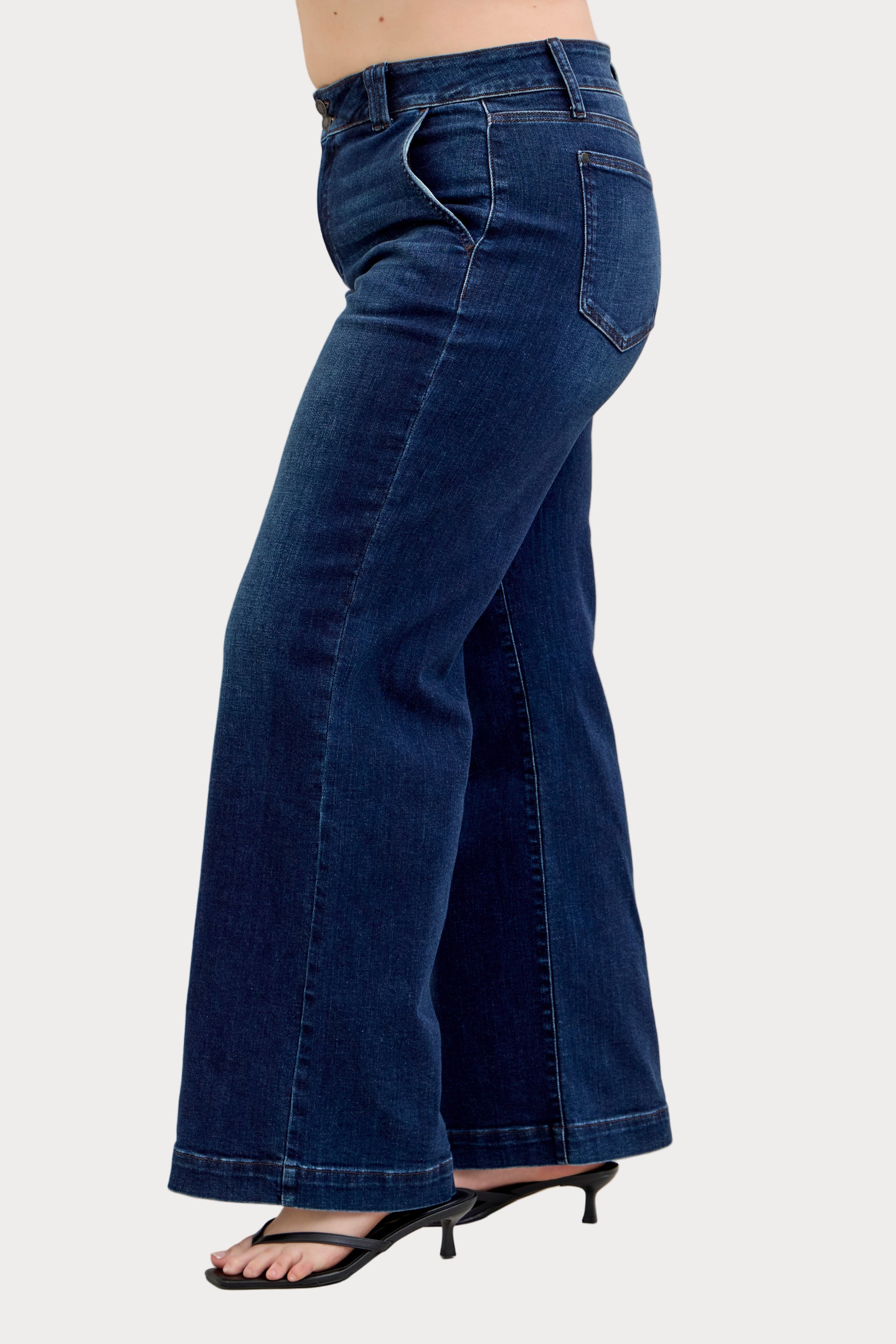 Step into timeless denim with these Judy Blue High Waist Trouser Jeans. Designed with a flattering high rise and soft, stretchy denim, these jeans deliver both comfort and confidence. The wide-leg silhouette adds effortless style—perfect for pairing with cozy sweaters or sleek blouses.