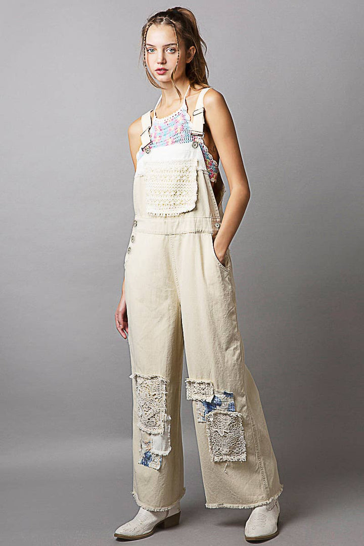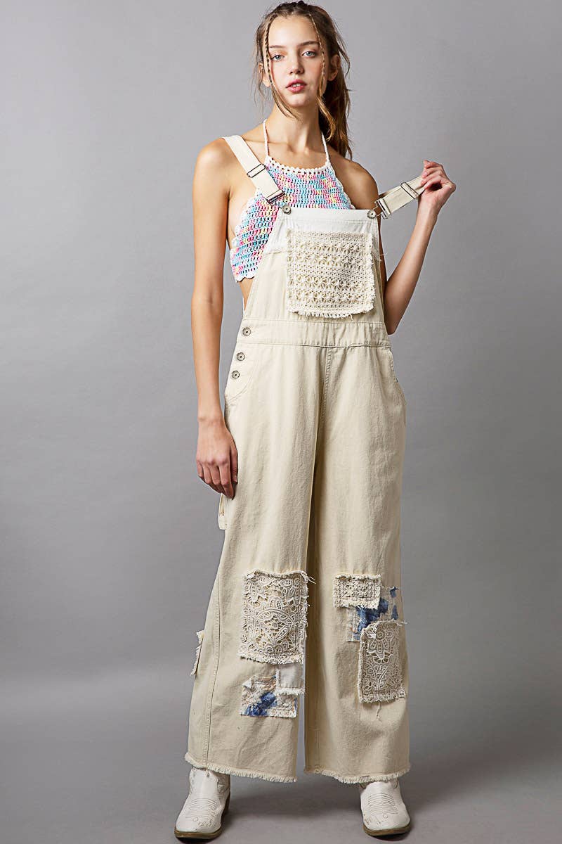 Elevate your casual wardrobe with the relaxed fit denim overalls from POL Clothing. Expertly crafted, these overalls showcase delicate crochet patchwork detailing that adds a touch of bohemian charm. Perfect for effortless style, they offer comfort and versatility for any occasion. Embrace laid-back elegance with these must-have overalls.
