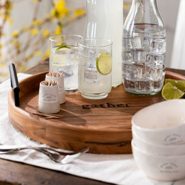 Bring warmth and charm to your gatherings with the Gather Wood Serving Tray. Crafted from exquisite acacia wood, this 15.5-inch diameter tray is perfect for family dinners or casual snack sessions. Its heirloom quality and tasteful design elevate everyday moments into cherished celebrations.