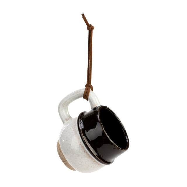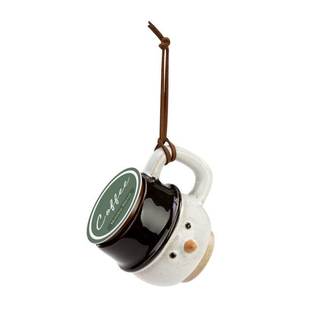 Elevate your holiday décor with the Snow Day Snowman Coffee Pod Mug Ornament from Carrie Meagher. This charming piece, crafted from stoneware, boasts a minimal design and a color palette that complements any style. Perfect for the entire winter season, it adds a festive touch to your home, whether displayed or used. Measuring 2" wide by 2.5" high, this food-safe ornament is ideal for hanging or as a unique gift. Remember to handwash to preserve its beauty. Embrace the spirit of winter with this delightful ornament.