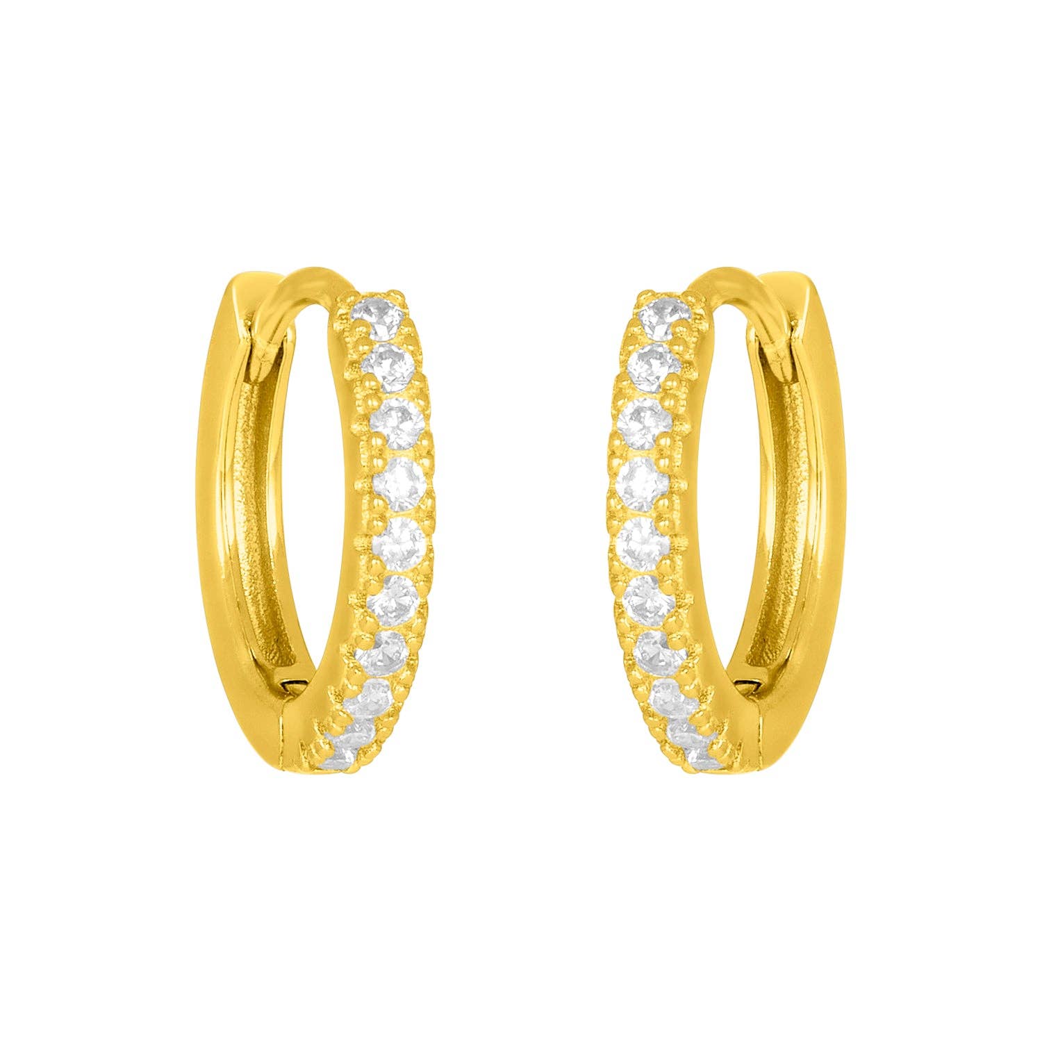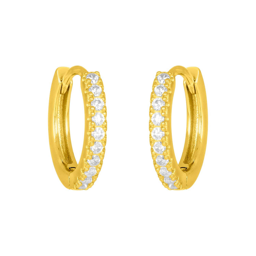 18k gold plated 925 sterling silver, cubic zirconia. Hypoallergenic. Comes packaged in our signature lavender pouch.