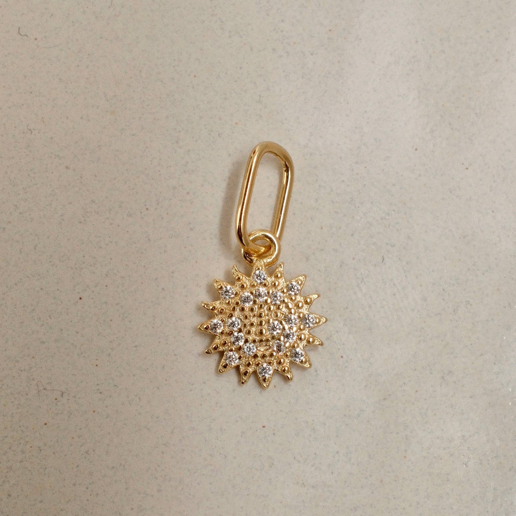 18k gold plated sterling silver charm with cubic zirconia. Chain sold separately.