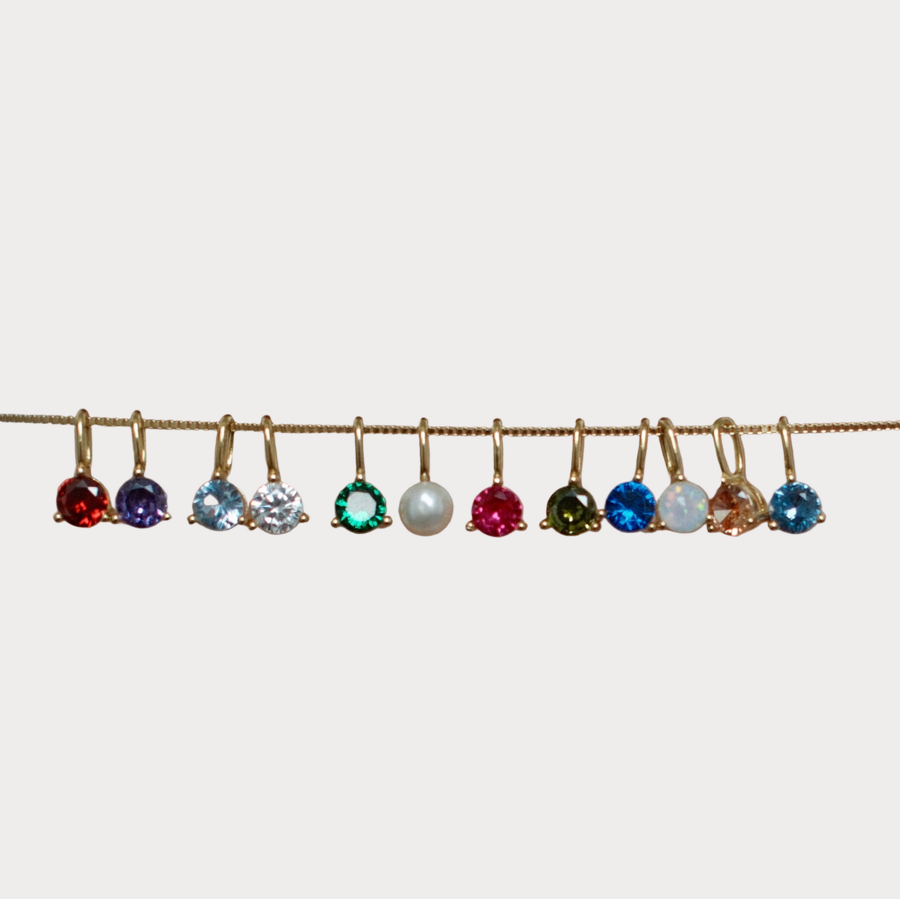 Add a personal, meaningful touch to your jewelry with these Birthstone Charms, designed to celebrate every story, month, and milestone. Each charm features a delicate gold setting surrounding a radiant gemstone or pearl, crafted to catch the light beautifully.