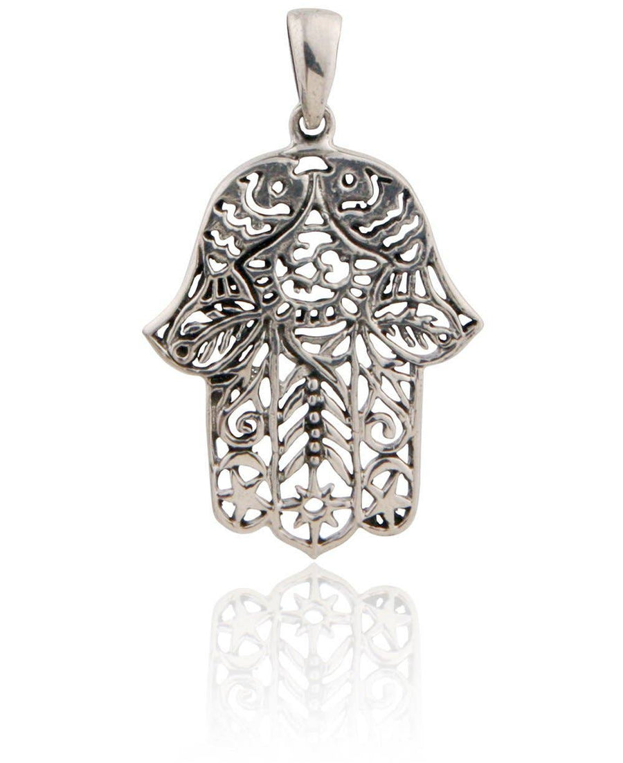 Detailed Hamsa Hand Pendant, Oxidized Finish