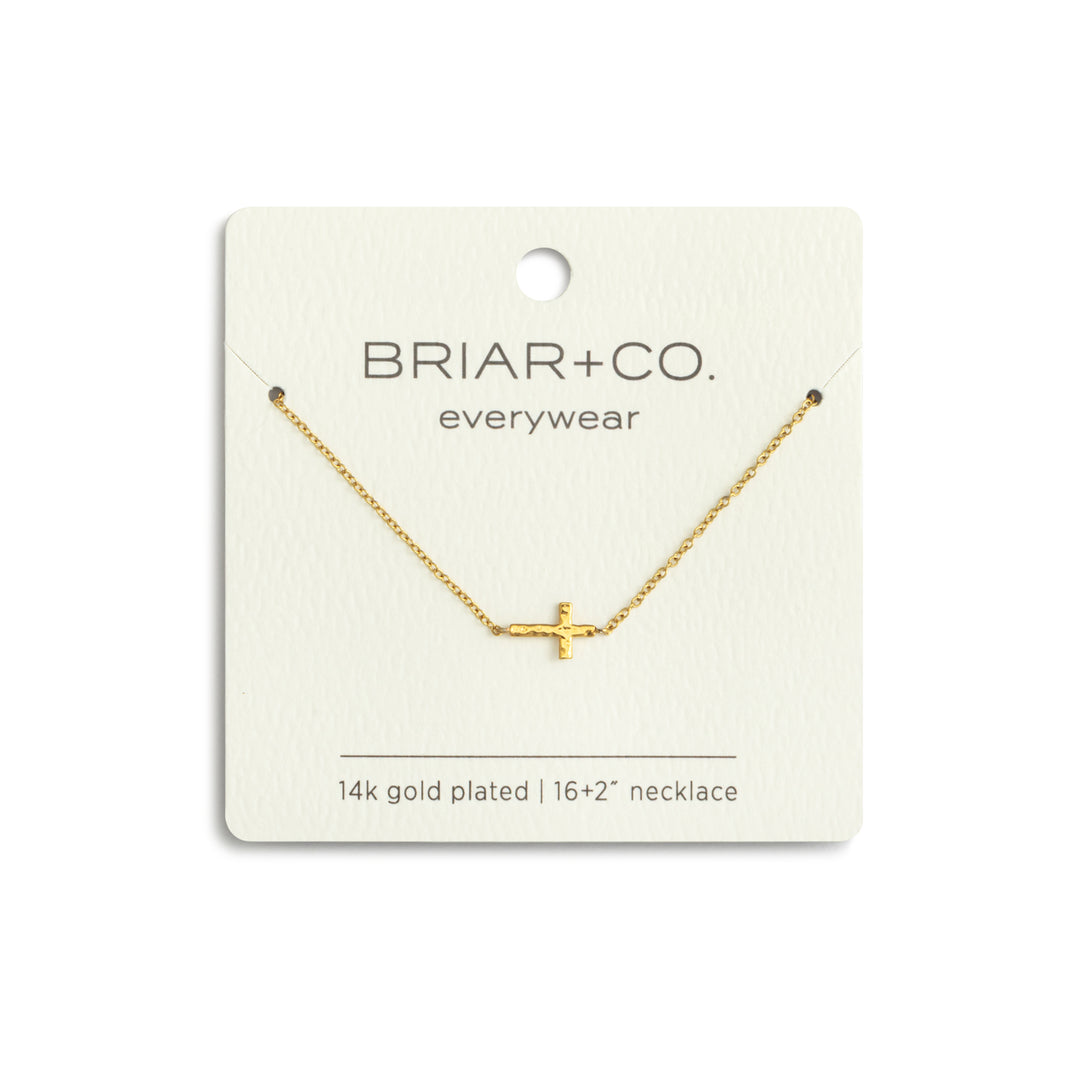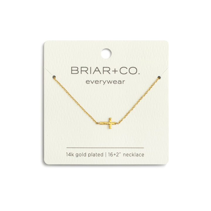 Add a divine touch to your look with our Gold Cross Charm Necklace from briar + Co. This water-resistant, 14k plated necklace is perfect for everyday wear. Its 16 inch length is easily adjustable with a 2 inch extender. Feel stylish and blessed with this versatile piece!