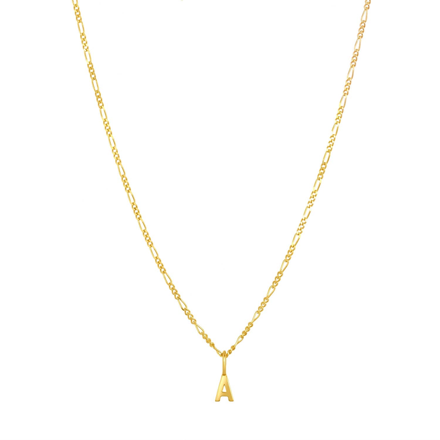 18k gold plated initial charm, 8mm length x 7.5mm width on an 18k gold plated 925 sterling silver figaro chain