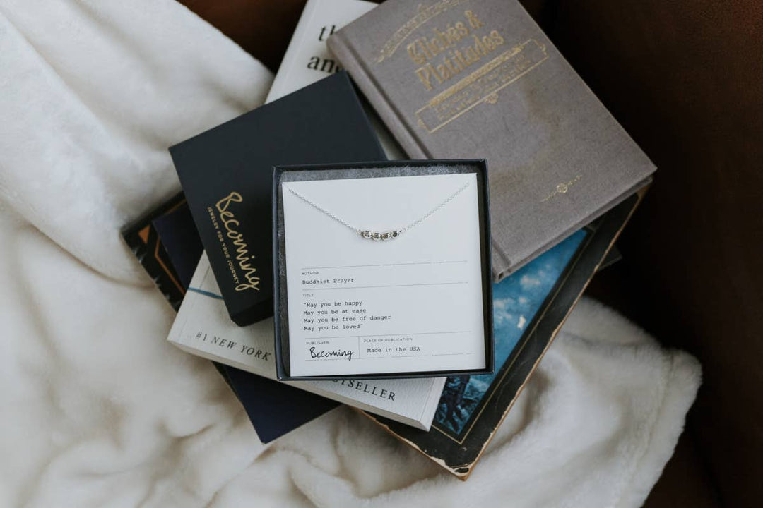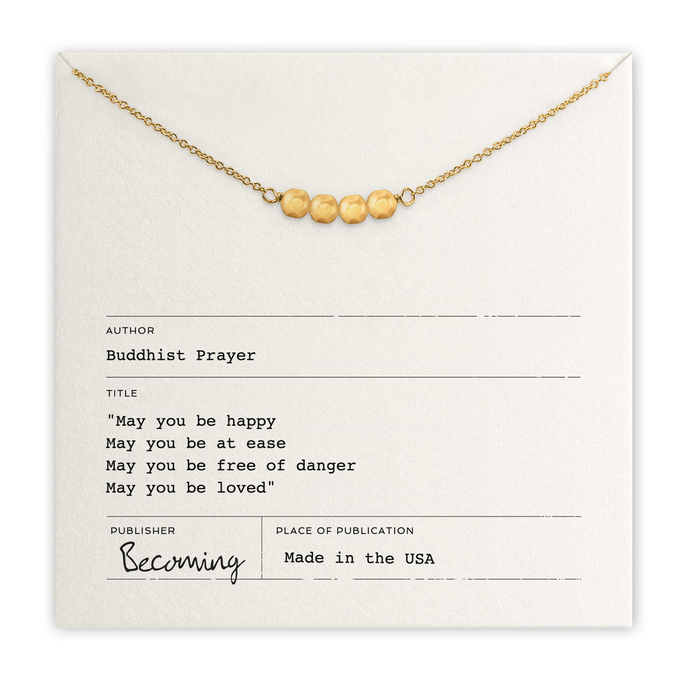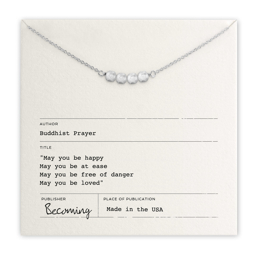 harms: Four small faceted beads Charm size: 4mm beads Length: 18" fine cable chain Available metals: Sterling silver, gold filled Packaging: Message necklace card + jewelry box