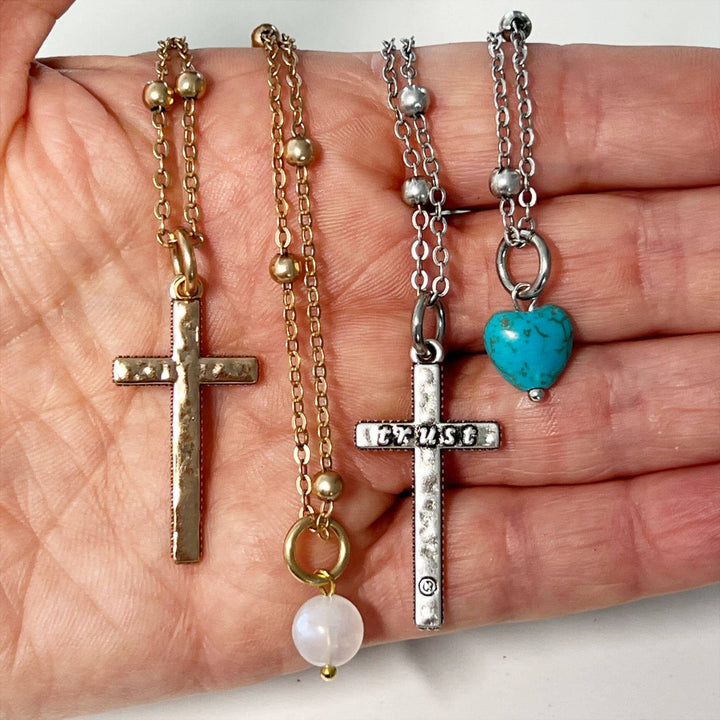 Add a touch of charm and meaning to your look with the "Trust" Cross Dainty Necklace. This delicate piece pairs a subtle cross pendant with a light, graceful chain—perfect for layering or wearing solo. Whether you're embracing faith or simply love a sweet, understated accessory, this necklace brings a playful sparkle to any outfit.