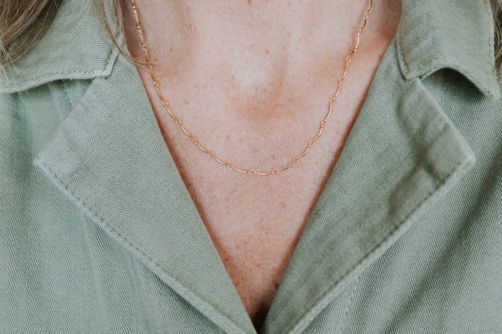 Style: Curved bar chain Length: Adjustable 16"-17.5" Available metals: Sterling silver, gold filled Packaging: Message necklace card + jewelry box