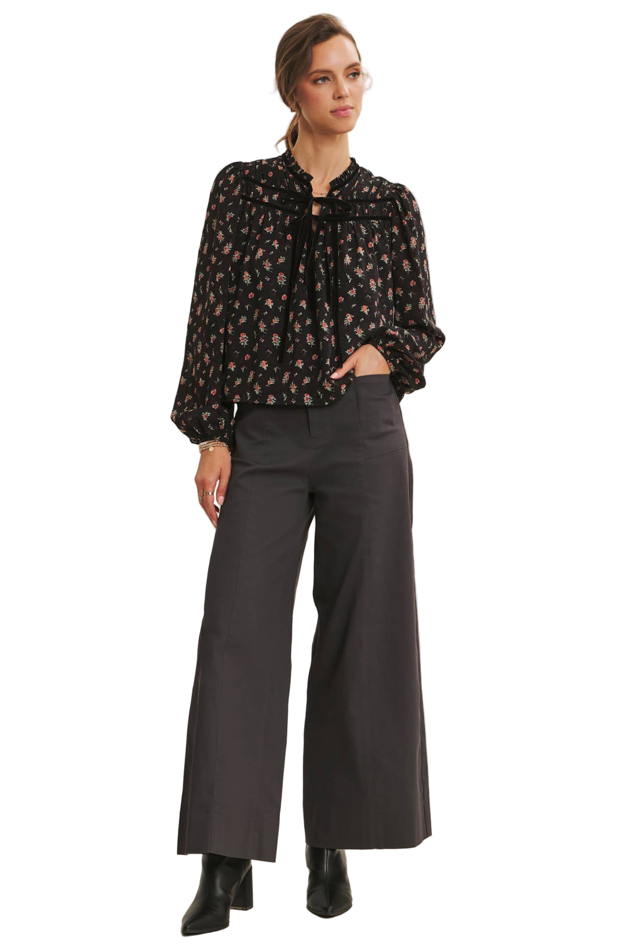 With long sleeves and a relaxed fit, this blouse transitions beautifully from casual afternoons to dressier evenings. Pair it with wide-leg trousers for work-ready polish, or tuck it into a tiered skirt for a soft boho look.