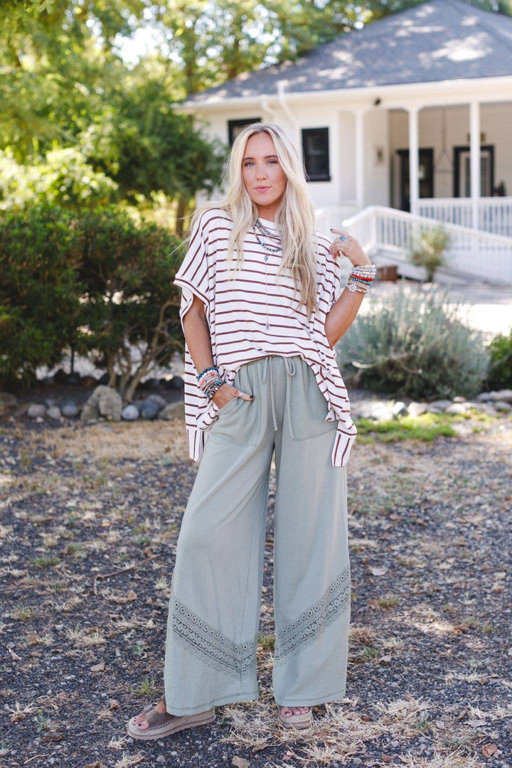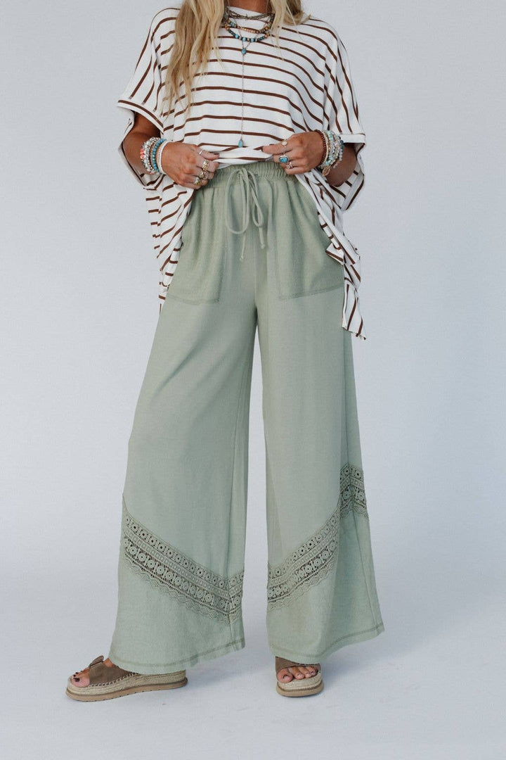 Introducing the Lyrical Wide Leg Pants in Green – the ultimate blend of comfort and style. Crafted from a soft cotton knit with charming acid-washing, these pants feature: