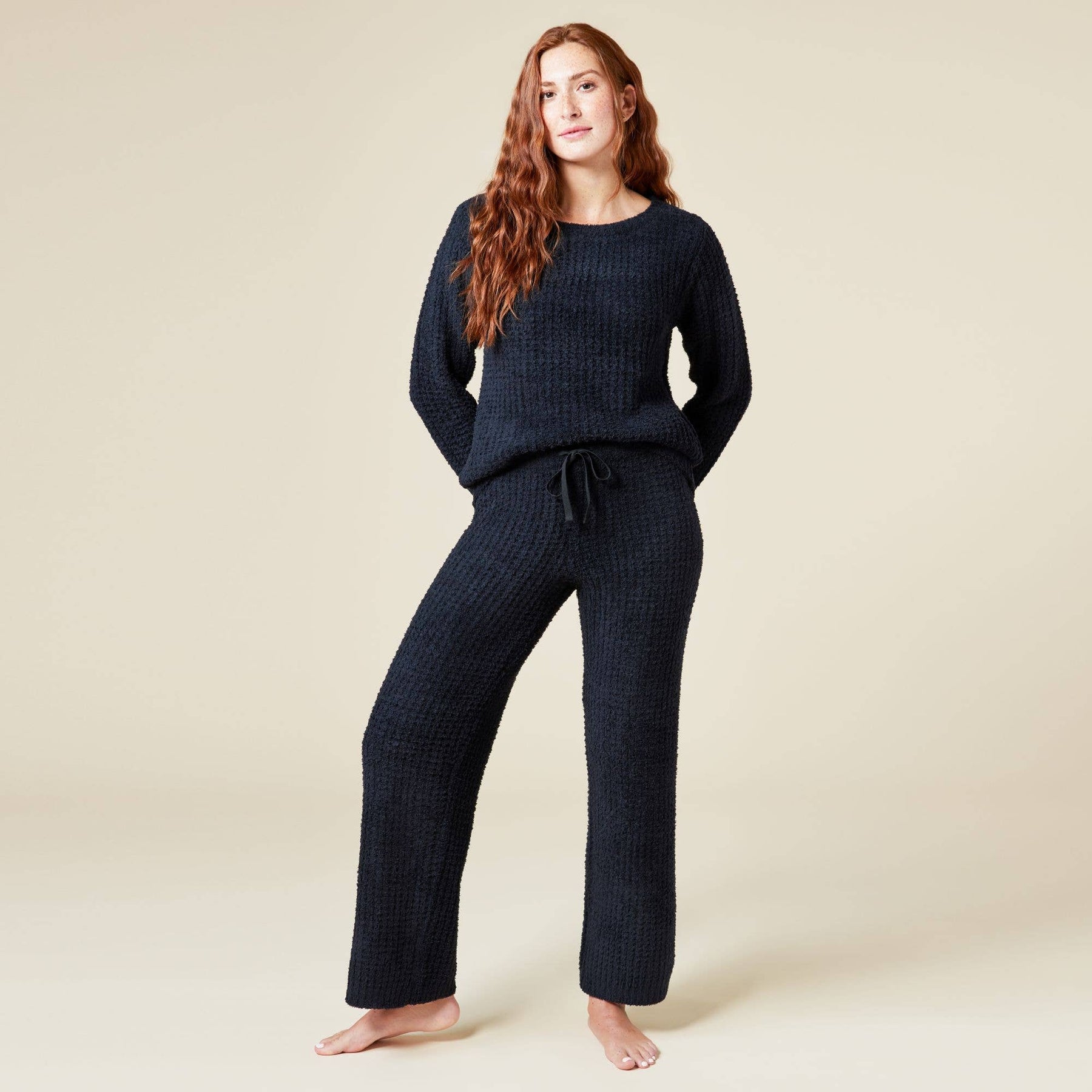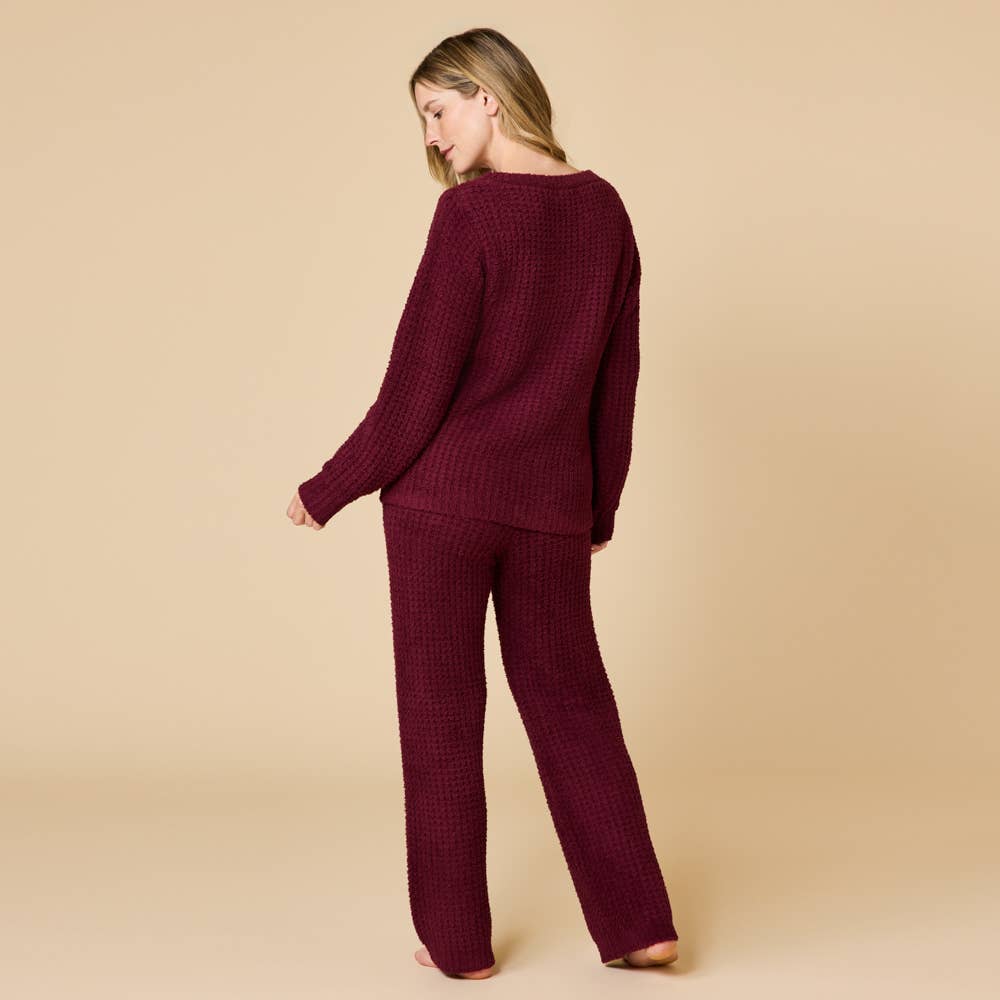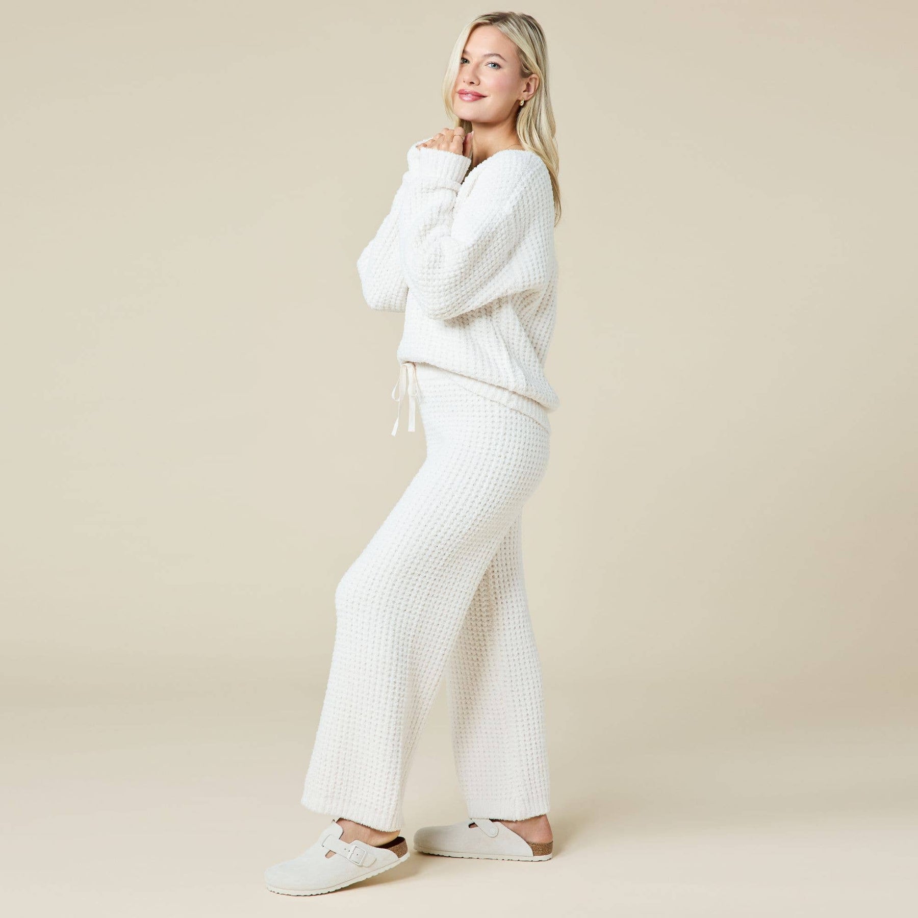 A fresh take on our most-loved lounge look. The Marshmallow Waffle Boatneck Lounge Set pairs an easy, slightly structured silhouette with the plush softness you’ve come to expect from our iconic Marshmallow fabric—now with a cozy waffle texture. The wide boatneck top drapes beautifully for a flattering, relaxed fit, while the matching pant offers effortless comfort with a softly sculpted shape. Supremely soft and endlessly giftable, this set delivers next-level lounging with just the right amount of texture. It’s comfort you know, with a twist you’ll love.