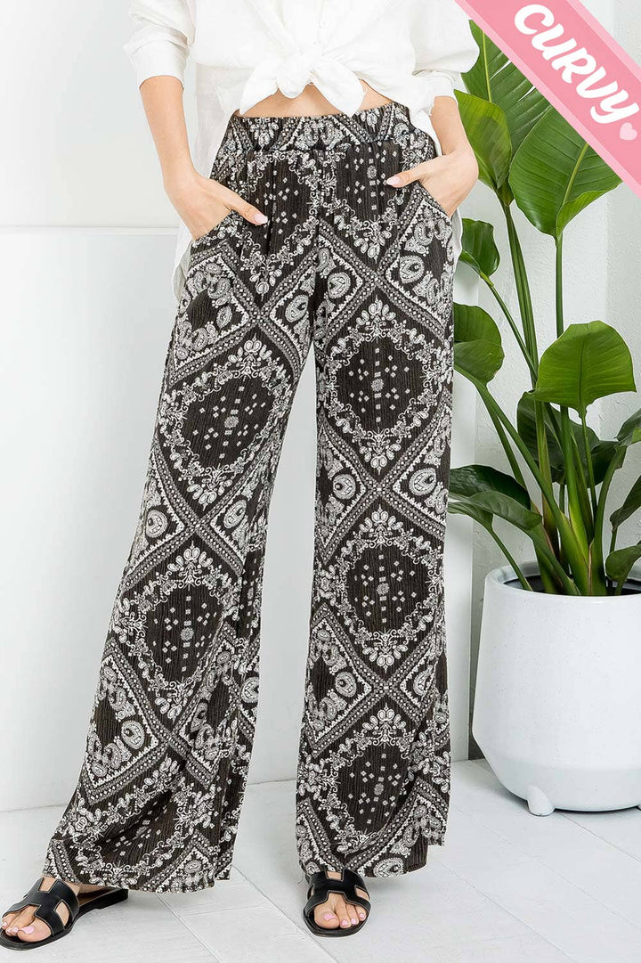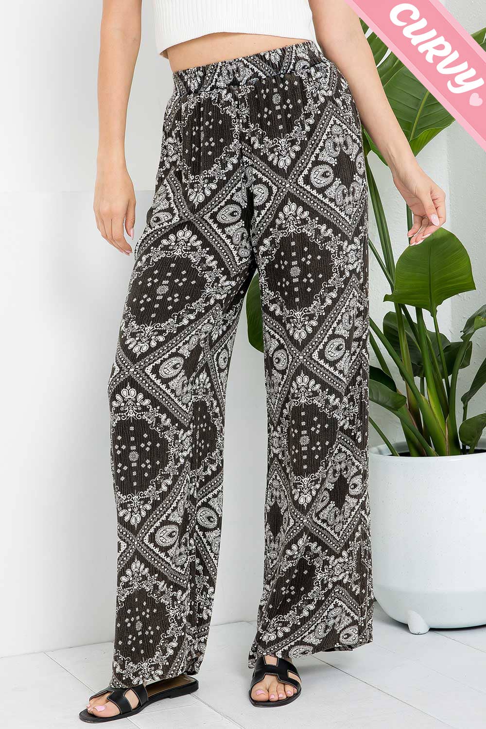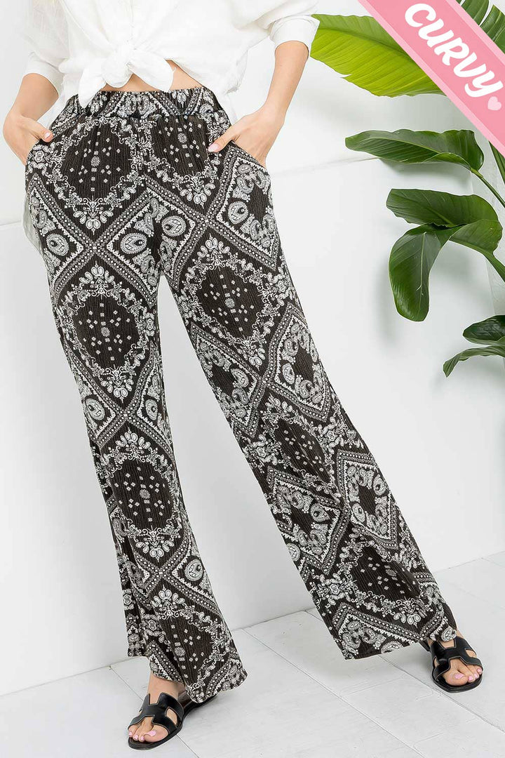 Escape to endless summer with our quirky and fun Bandana Print Pants ! The unique mineral washed fabric ensures each piece has a slightly different color, making them truly one-of-a-kind. These pants feature a high rise elastic waistband and easy flowy silhouette, perfect for a resort or vacation. Don't miss out on the most effortless style under the sun!
