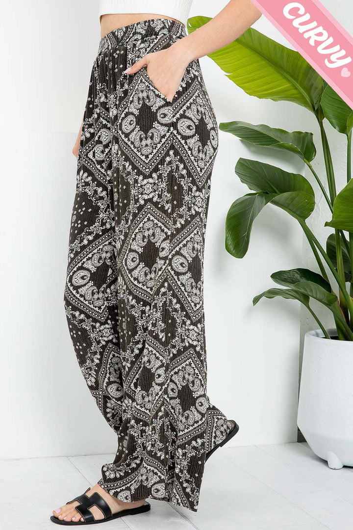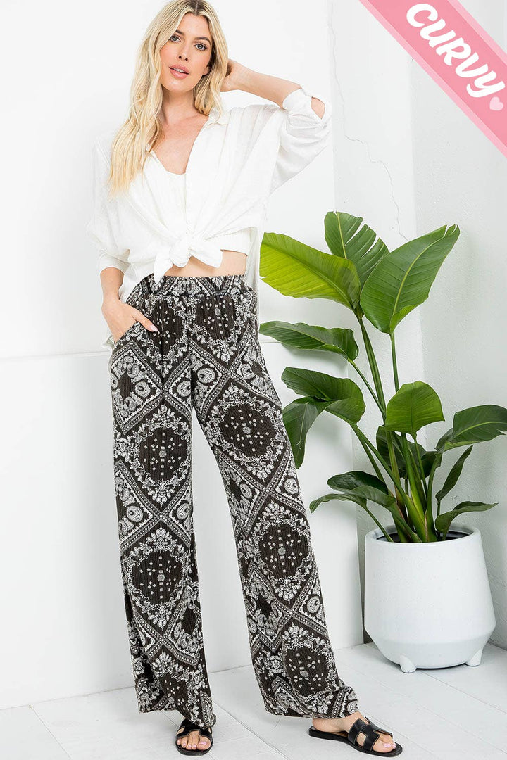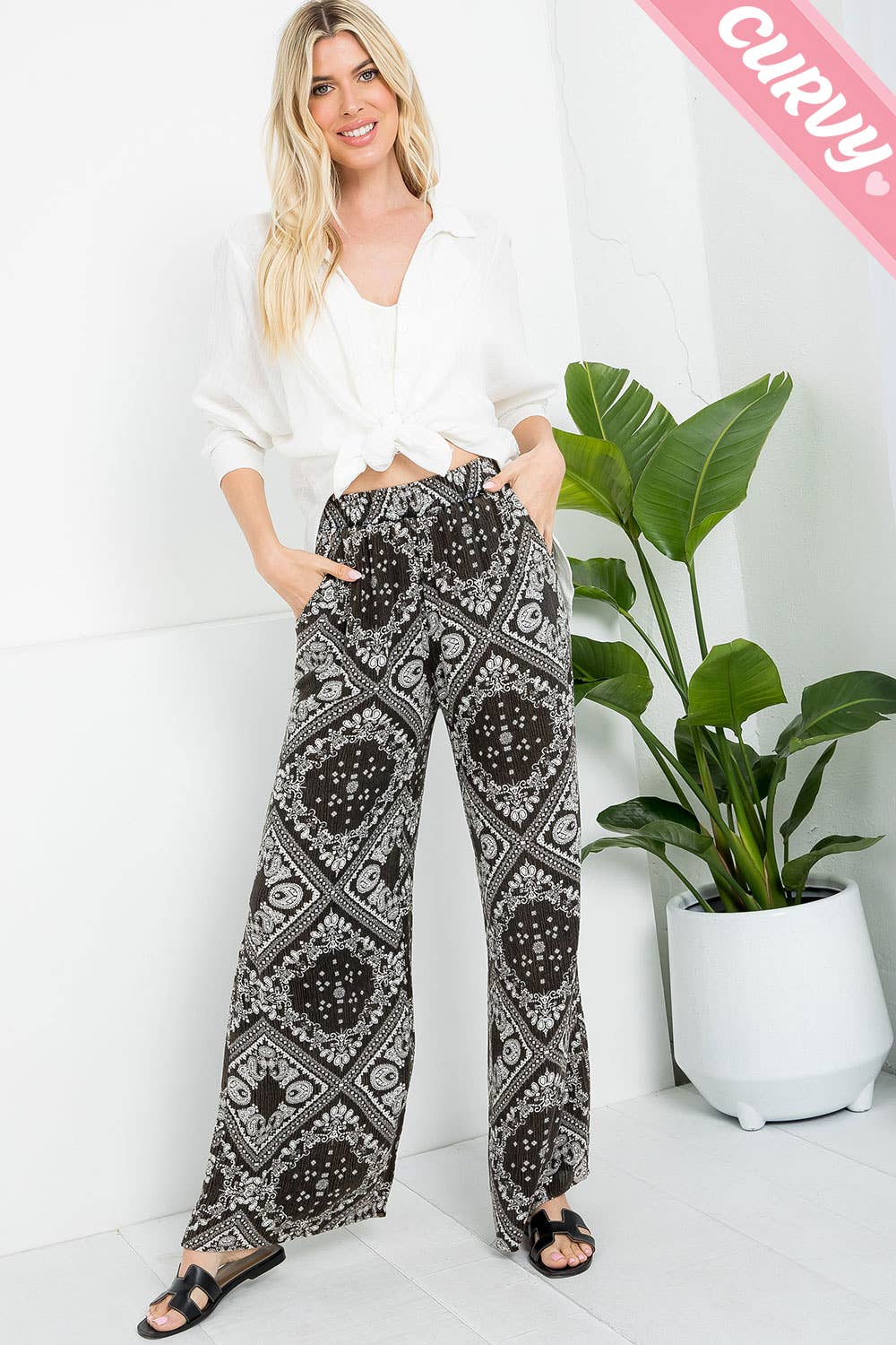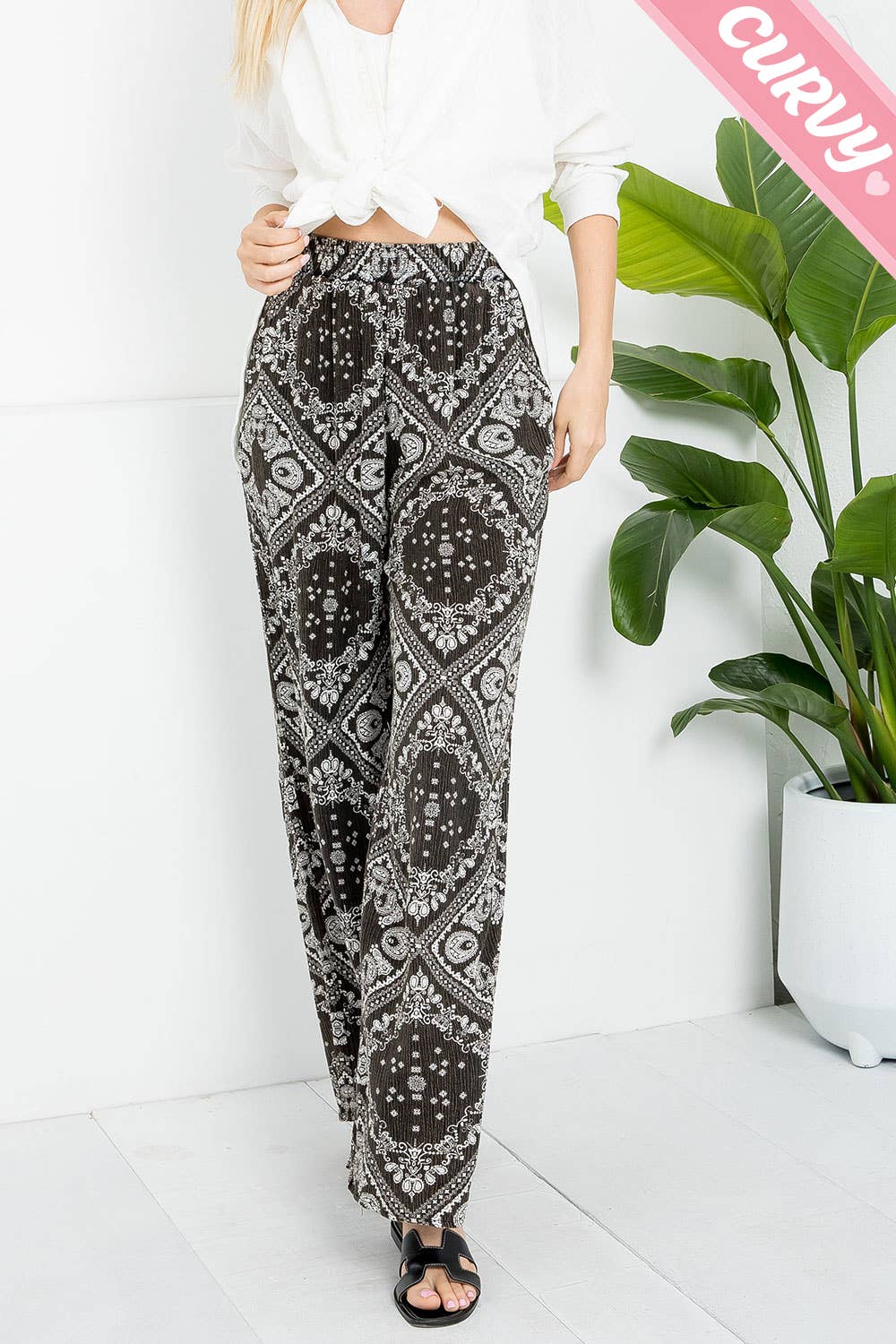 Escape to endless summer with our quirky and fun Bandana Print Pants ! The unique mineral washed fabric ensures each piece has a slightly different color, making them truly one-of-a-kind. These pants feature a high rise elastic waistband and easy flowy silhouette, perfect for a resort or vacation. Don't miss out on the most effortless style under the sun!