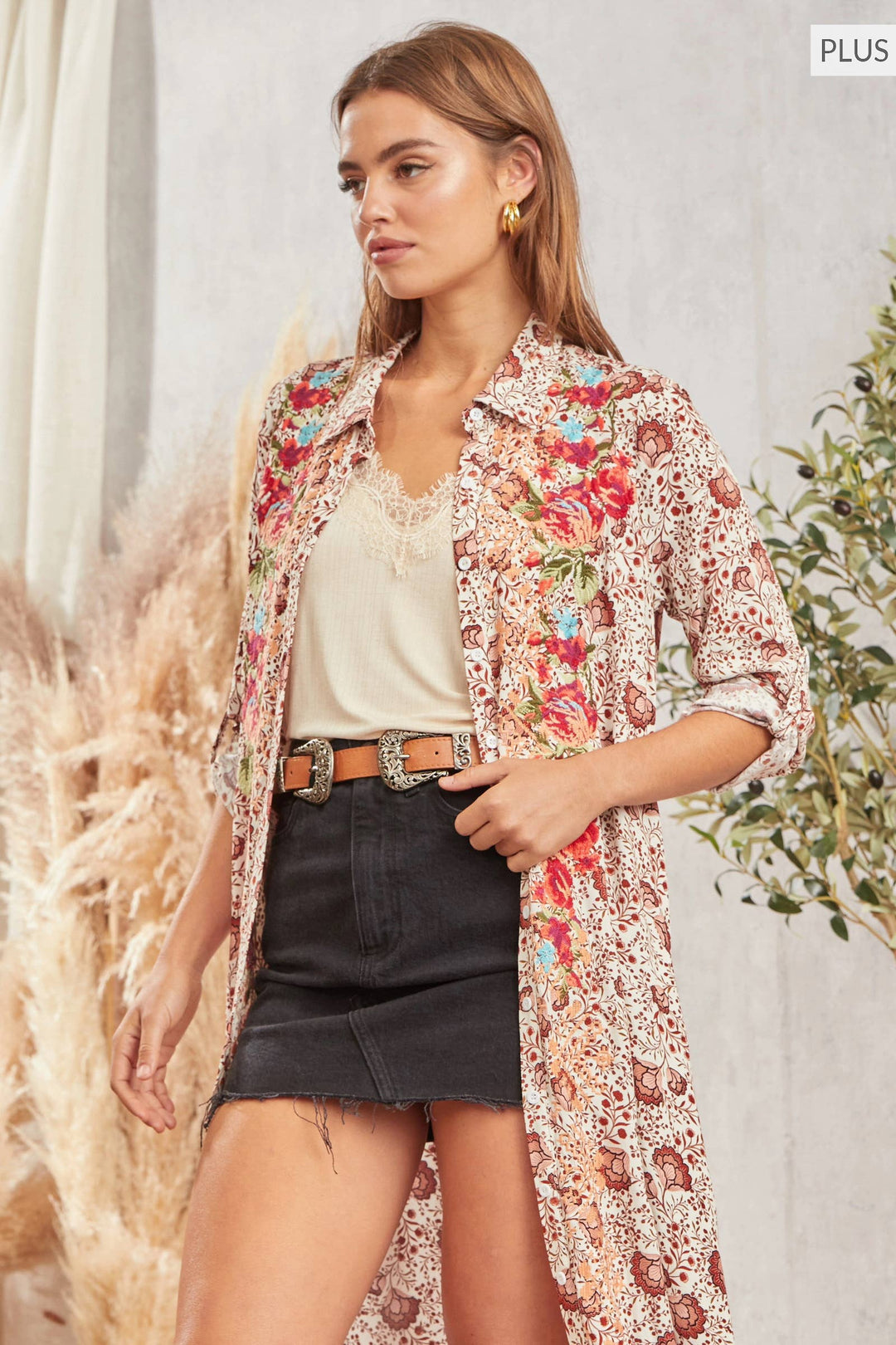 **Plus | Embroidered Floral Maxi Shirtdress & Duster**