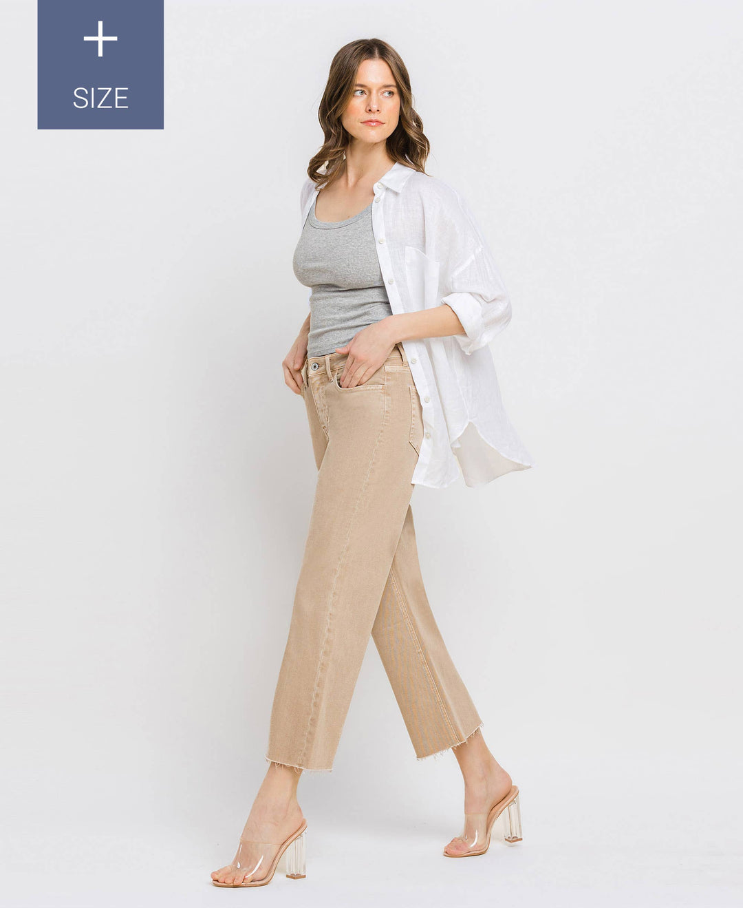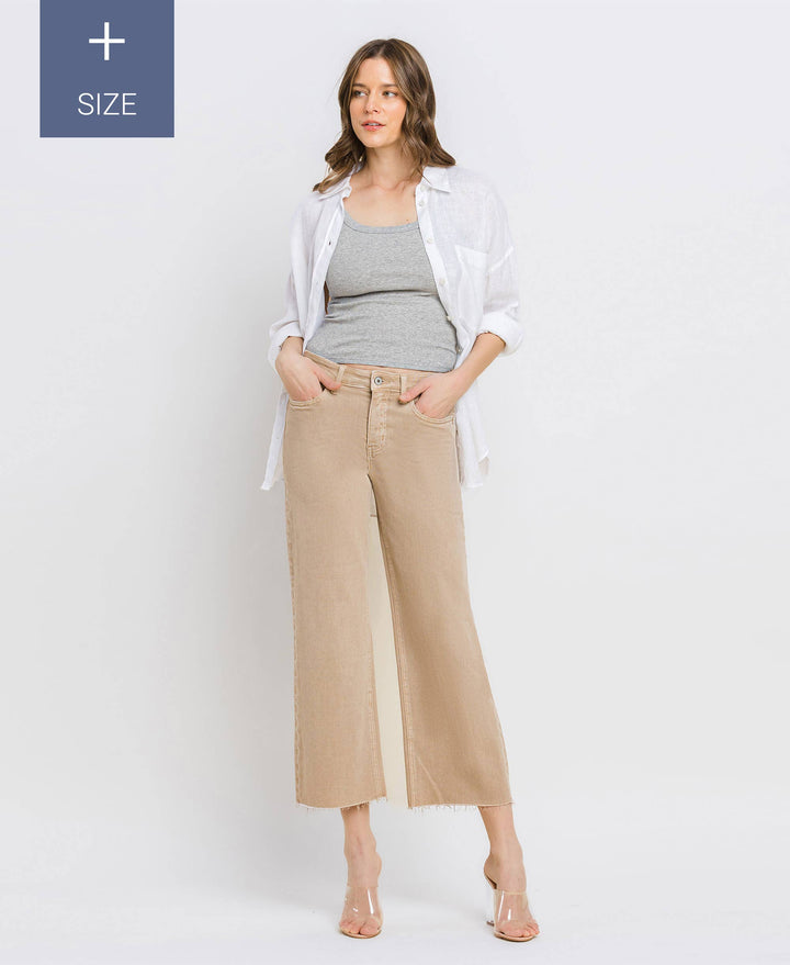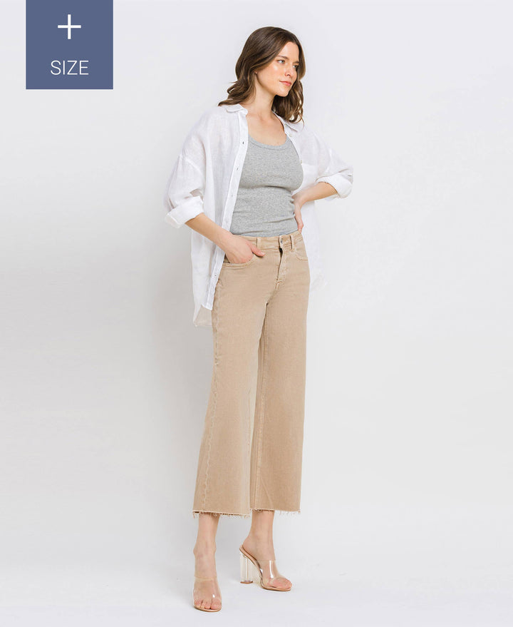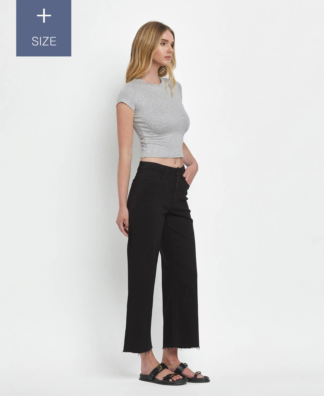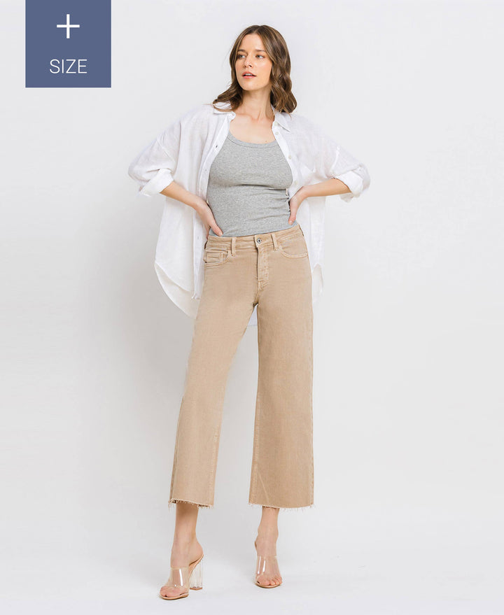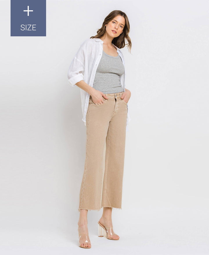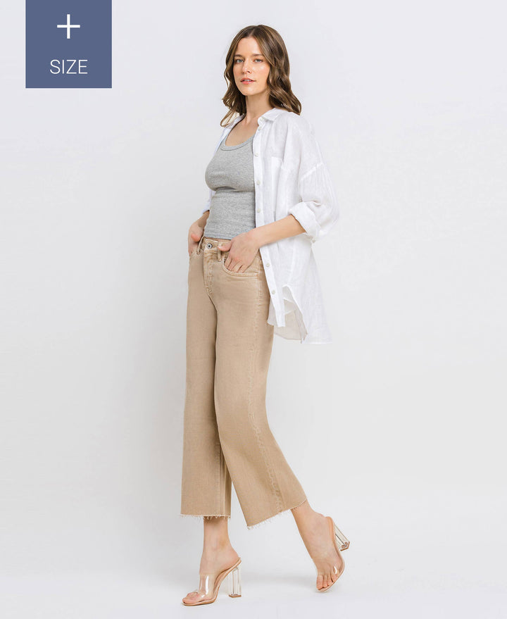 Get ready to turn heads in these quirky Olivia Plus High Rise Crop Wide Leg Jeans! Made with comfortable stretch denim, they feature a high rise waist and a trendy raw hem. With a cropped length and wide legs, these jeans add a playful touch to any look. (Wit and sass included.)