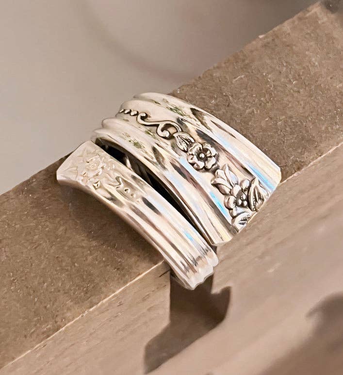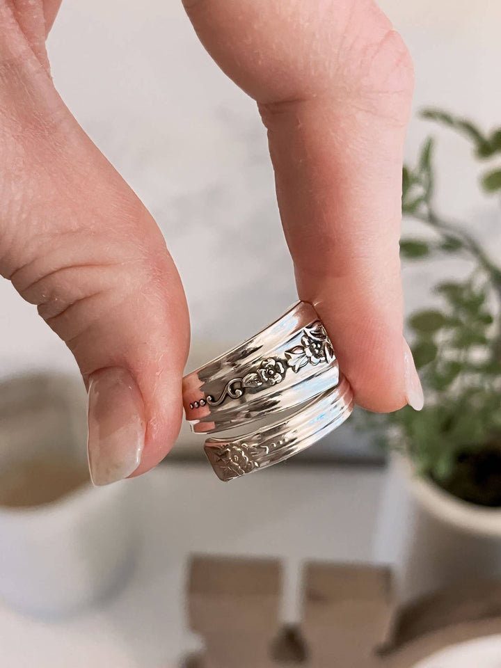 Introducing the Dainty Jubilee Spiral Spoon Ring, a captivating piece of jewellery crafted from repurposed vintage silverware. Each ring is handcrafted to showcase the delicate spiral pattern, resulting in a unique and elegant design.