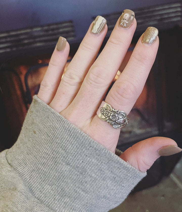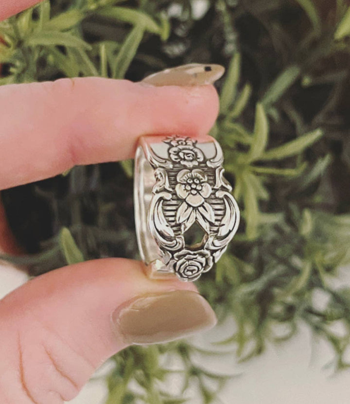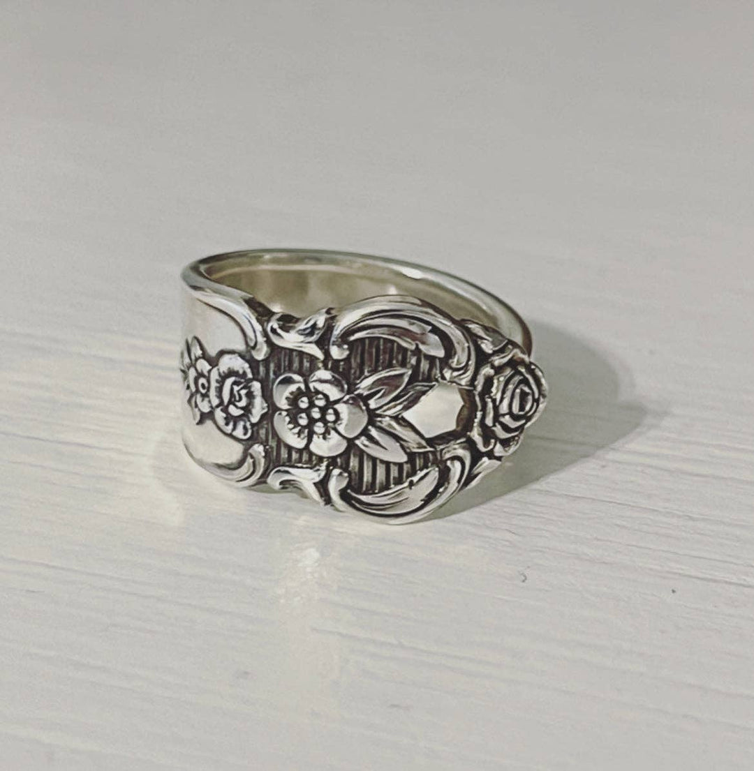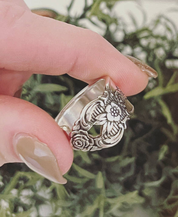 Discover the Distinction Vintage Spoon Ring, crafted from vintage, recycled silver-plated silverware. Featuring the elegant “Distinction” pattern, this unique piece adds a touch of nostalgic charm to any outfit. Explore our collection for matching items or reach out for personalised options. Enjoy fast and free shipping on your purchase. Elevate your jewellery collection with this one-of-a-kind ring today!