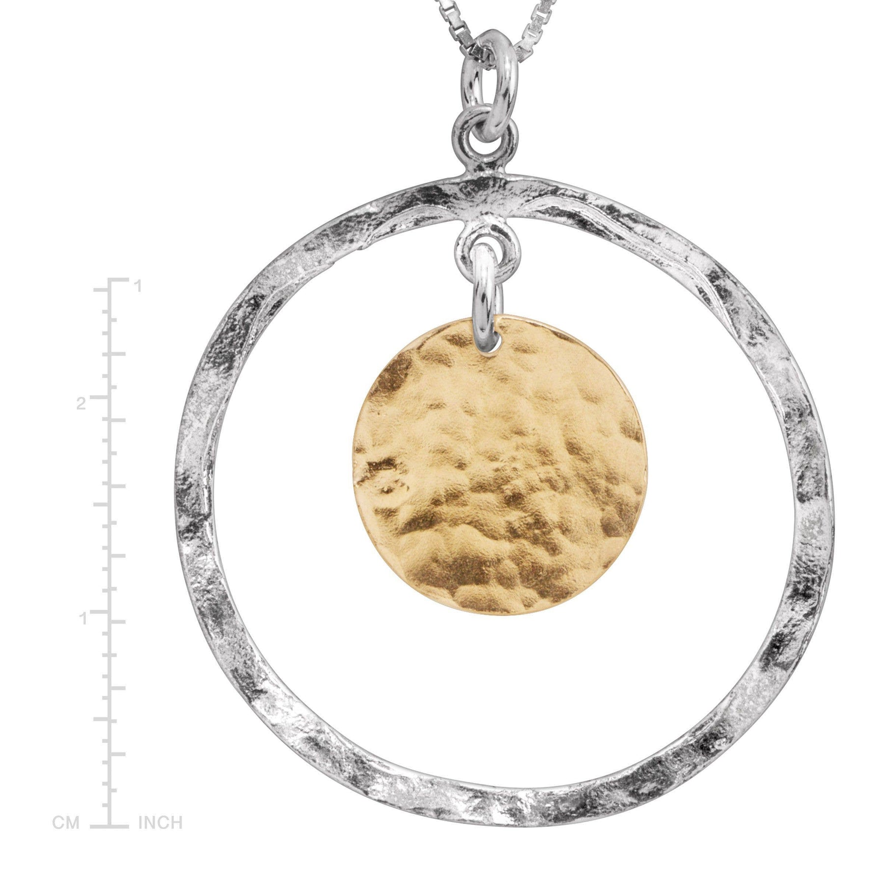 Discover the beauty of coastal elegance with the Silpada 'Marbella' Disc Pendant in Sterling Silver. Handcrafted by artisan Silvi Rozenfeler in Israel, this stunning piece showcases a gold-plated sterling silver disc featuring a unique hammered design, gracefully surrounded by wavy sterling silver. Perfectly suited for any occasion, this pendant adds a touch of sophistication to your favorite dress. With a quality stamp of .925 sterling silver, trust in the exceptional craftsmanship and style of this accessory. Shine bright and make a statement wherever you go.