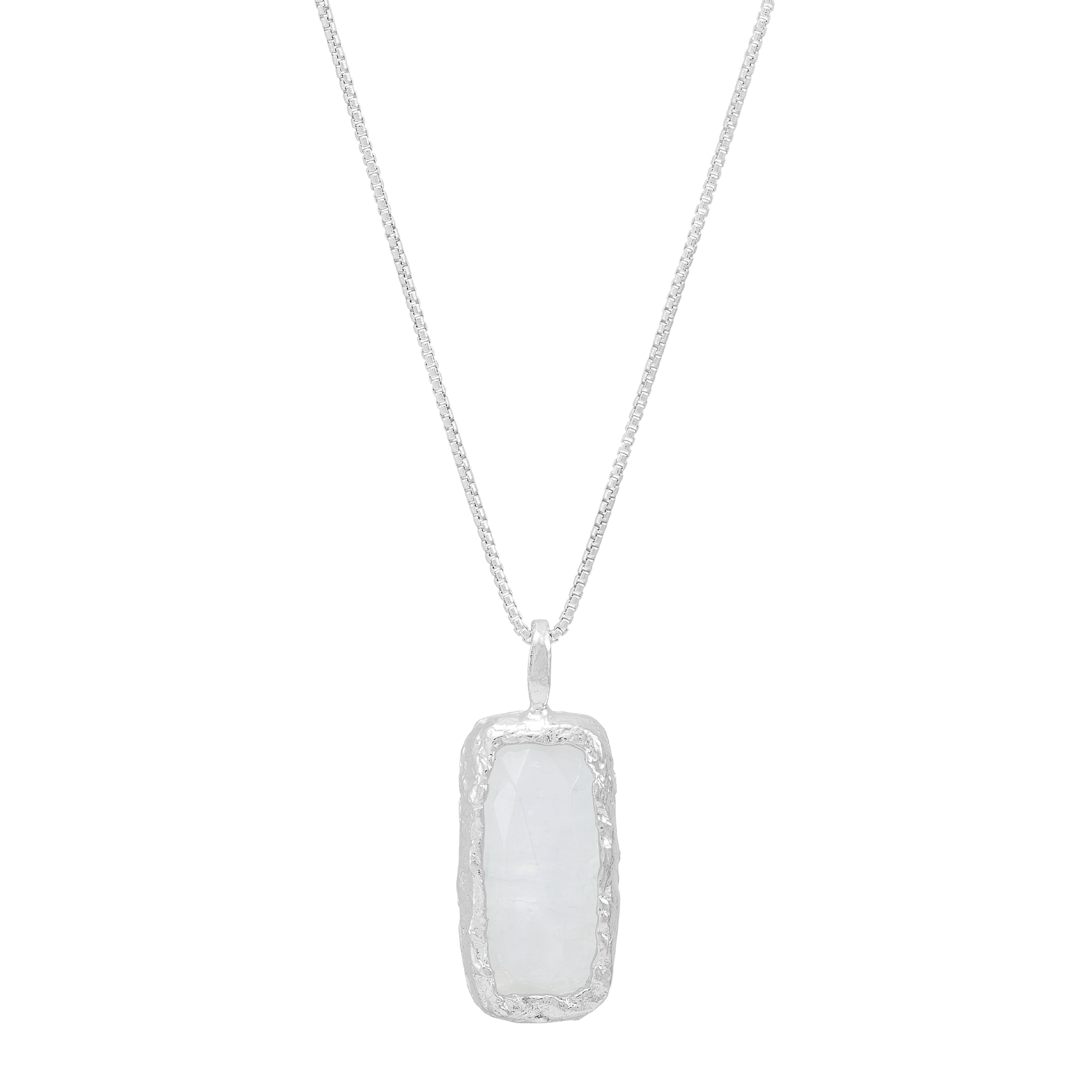 - Showcasing a beautiful 18mm by 8mm milky moonstone, this pendant is framed in textured sterling silver.