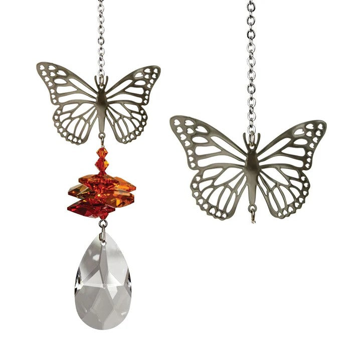 Introducing the Crystal Fantasy - Butterfly, a stunning piece that embodies transformation and positivity. This enchanting butterfly, adorned with a cluster of genuine Austrian crystals, sparkles beautifully in sunlight, making it a perfect addition to any space.