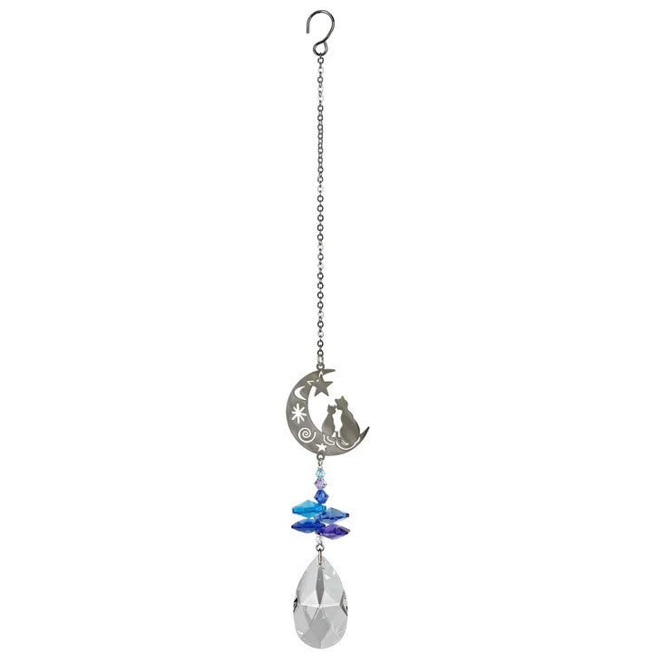 Discover the enchanting allure of the Crystal Fantasy - Cats suncatcher. Celebrating the sacred elegance of cats revered in ancient Egypt, this stunning piece features two cats admiring the moon above a shimmering cluster of genuine Austrian crystals.