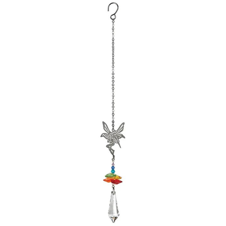 Introducing the Crystal Fantasy - Rainbow Fairy, a stunning piece that embodies beauty, liberty, and female strength. This enchanting nymph is topped with a dazzling cluster of multi-coloured crystals that catch the sunlight beautifully. Perfect as a suncatcher or festive Christmas ornament, it adds a touch of magic to any space, whether in an office or a cosy dorm room.