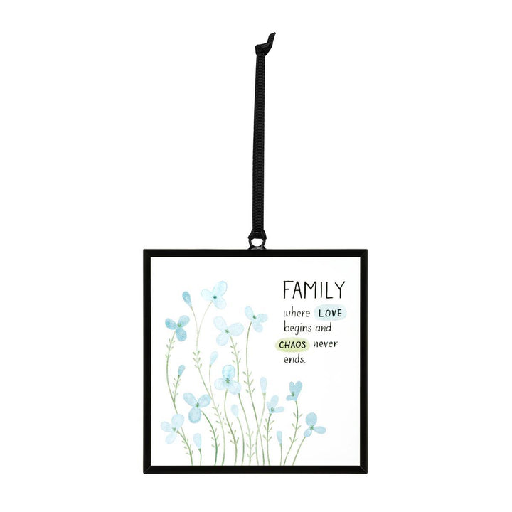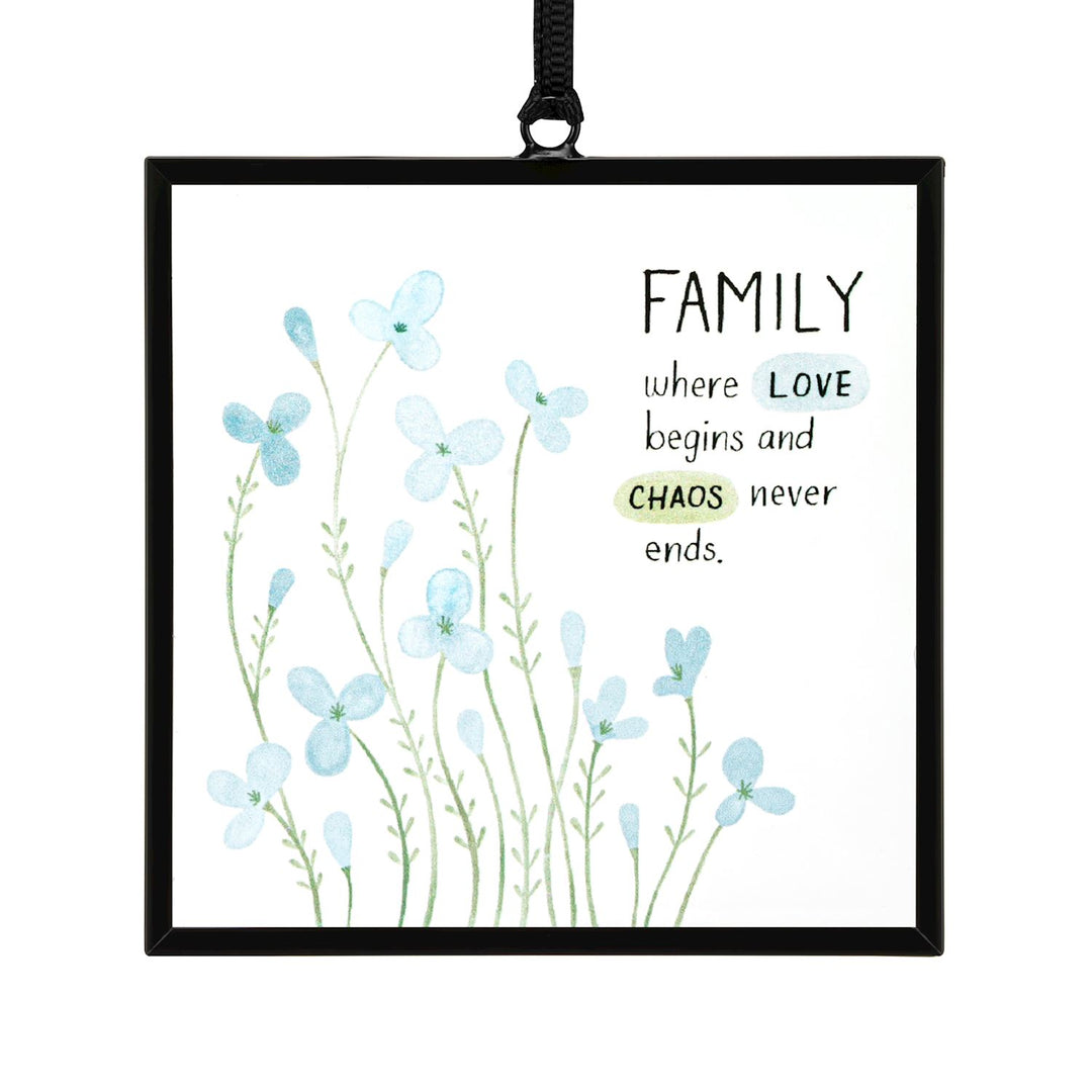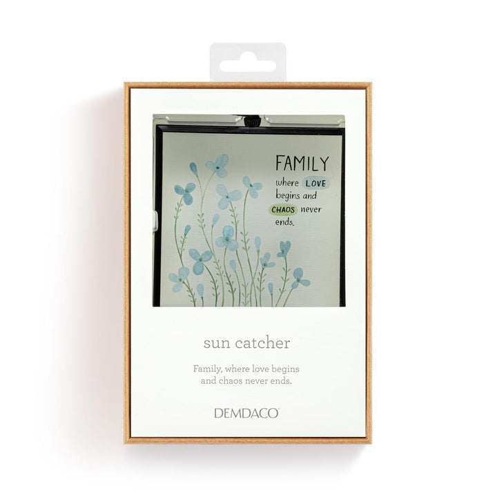 Introducing the Family Love & Chaos Suncatcher. Add a touch of natural beauty to your home and experience the mood-boosting and therapeutic effects of spending time with nature. With an inspiring message, this suncatcher serves as a daily reminder to embrace self-growth and positivity.