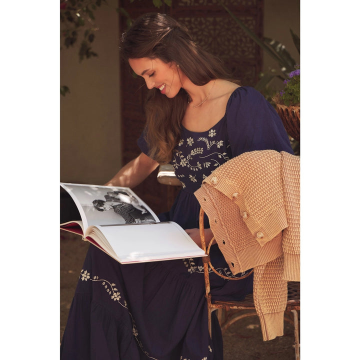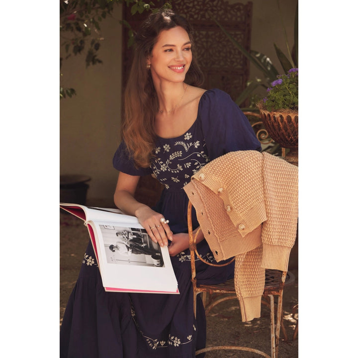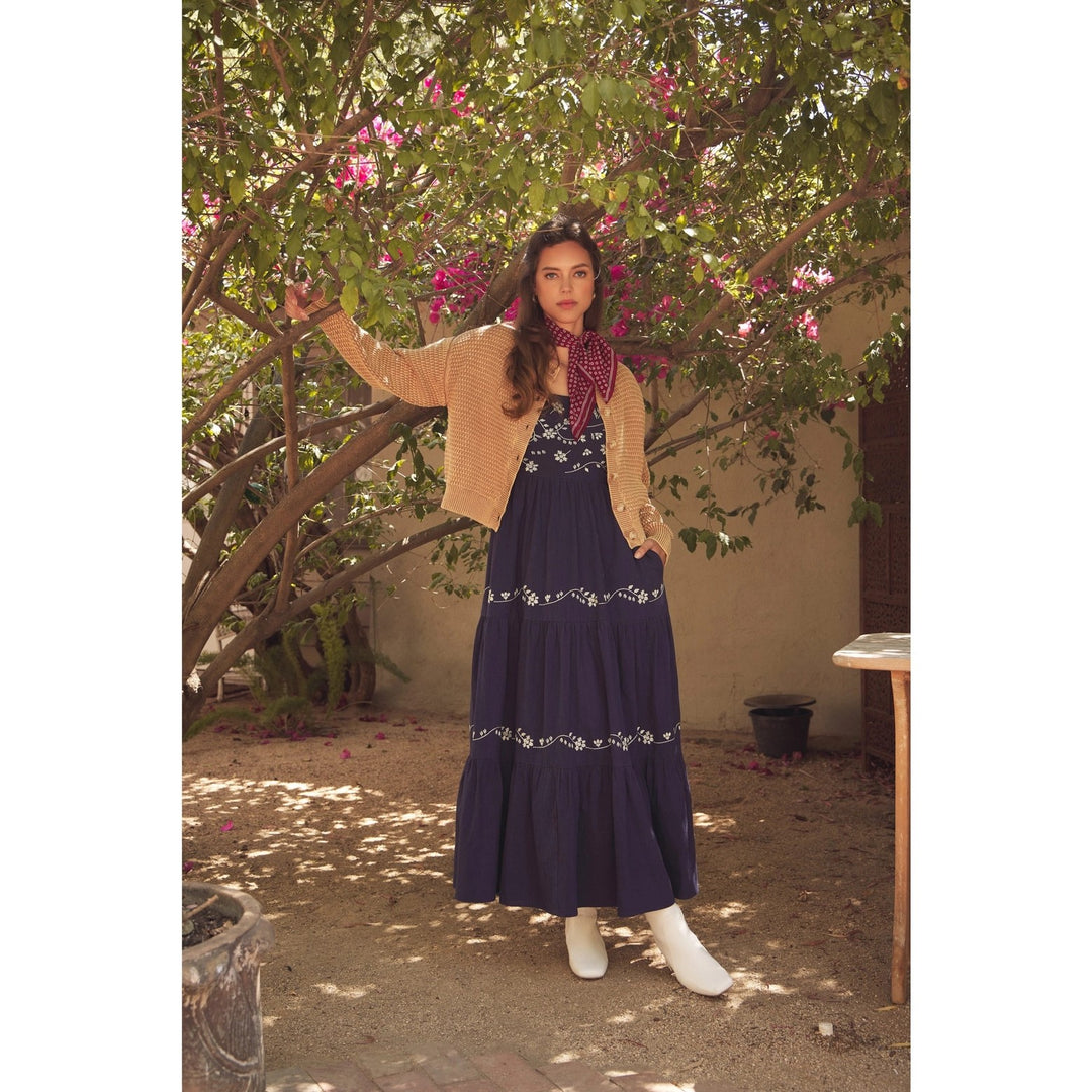 A cozy-chic layer with a nostalgic twist, this mineral-washed cable knit cardigan is designed in a cropped silhouette with a vintage hand feel. The soft cable texture and worn-in mineral wash offer an effortless charm—perfect for early fall layering. With its button-down front, easy fit, and just-right crop length, this cardigan pairs beautifully with our embroidery dresses or our midi denim skirt. It’s a timeless piece that feels handcrafted yet trend-forward, ideal for romantic, layered looks.