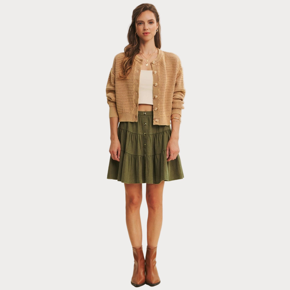 Cozy Cable Knit Cardigan | Tan Mineral-Washed Sweater