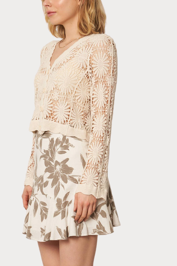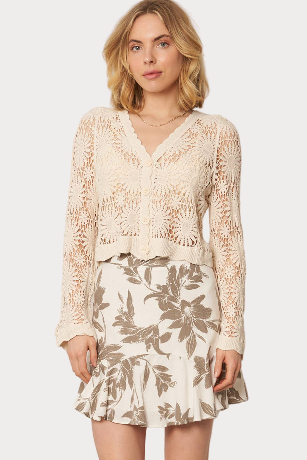 Introducing our Flower Pattern Crochet Cardigan, perfect for adding a touch of whimsy to any outfit. Made with 100% cotton, this cardigan will keep you cool and comfortable while showcasing a beautiful flower pattern in its crochet design. A must-have for any fashion-forward individual with a love for unique pieces.