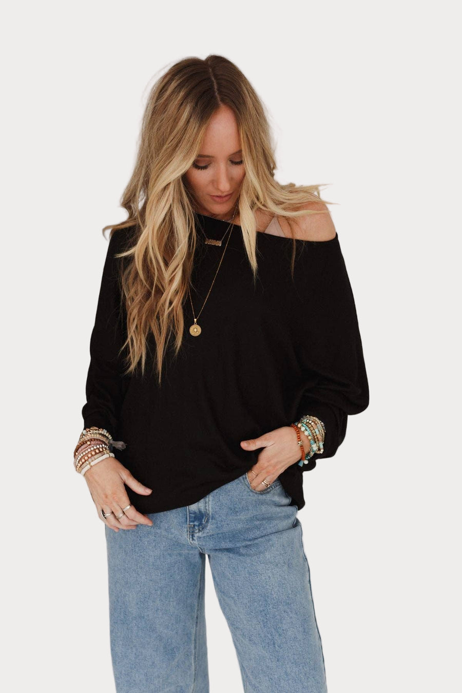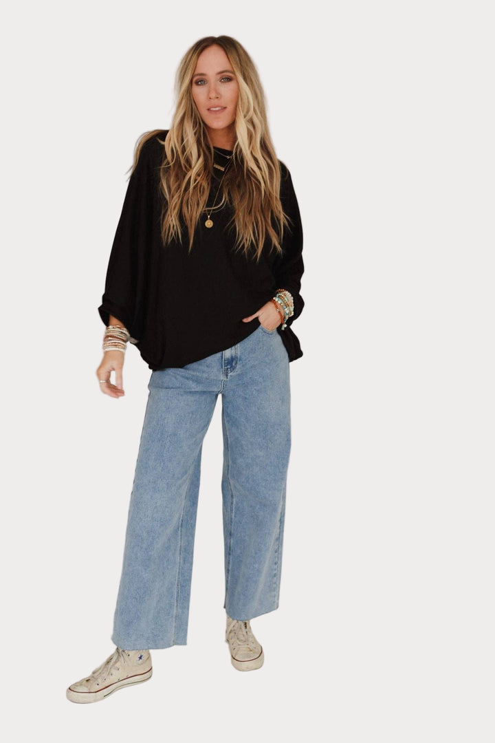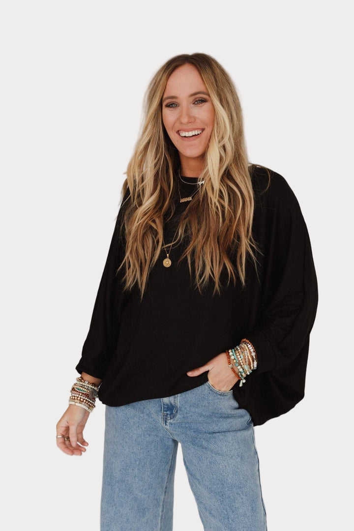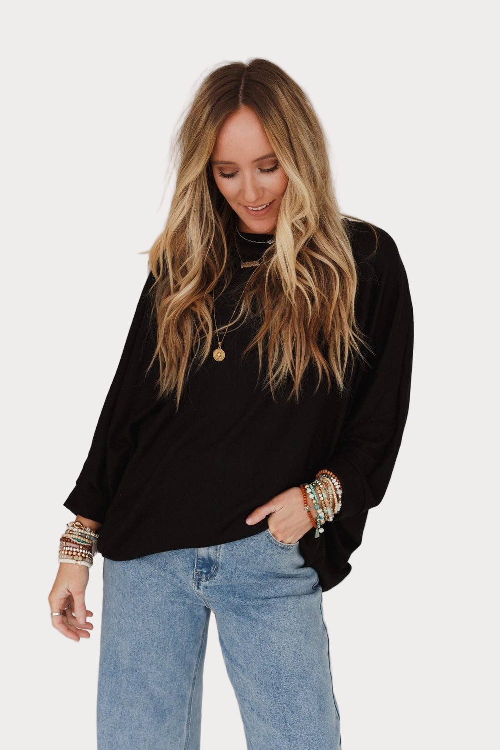 Fly With Me Batwing Sleeve Knit Sweater | Black