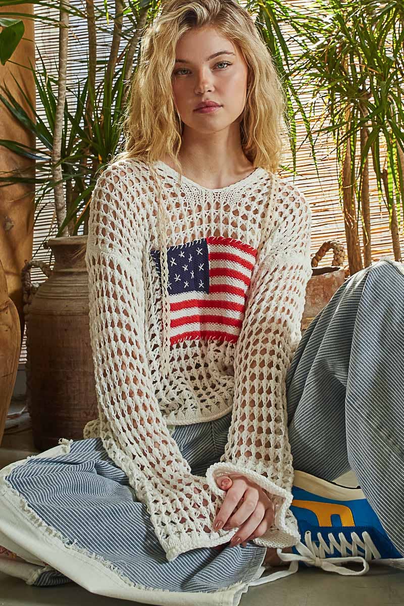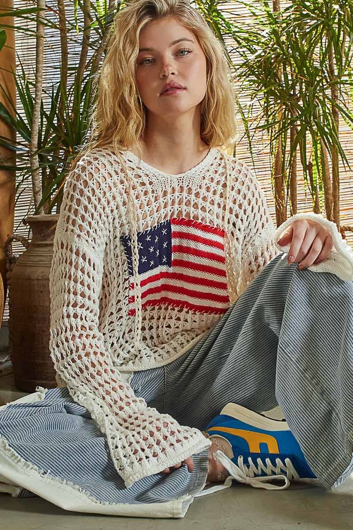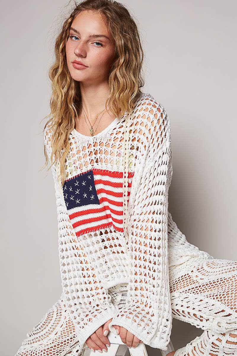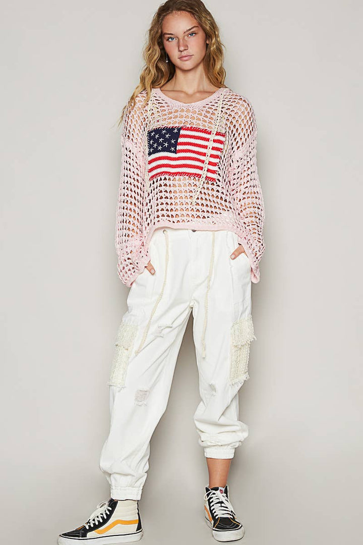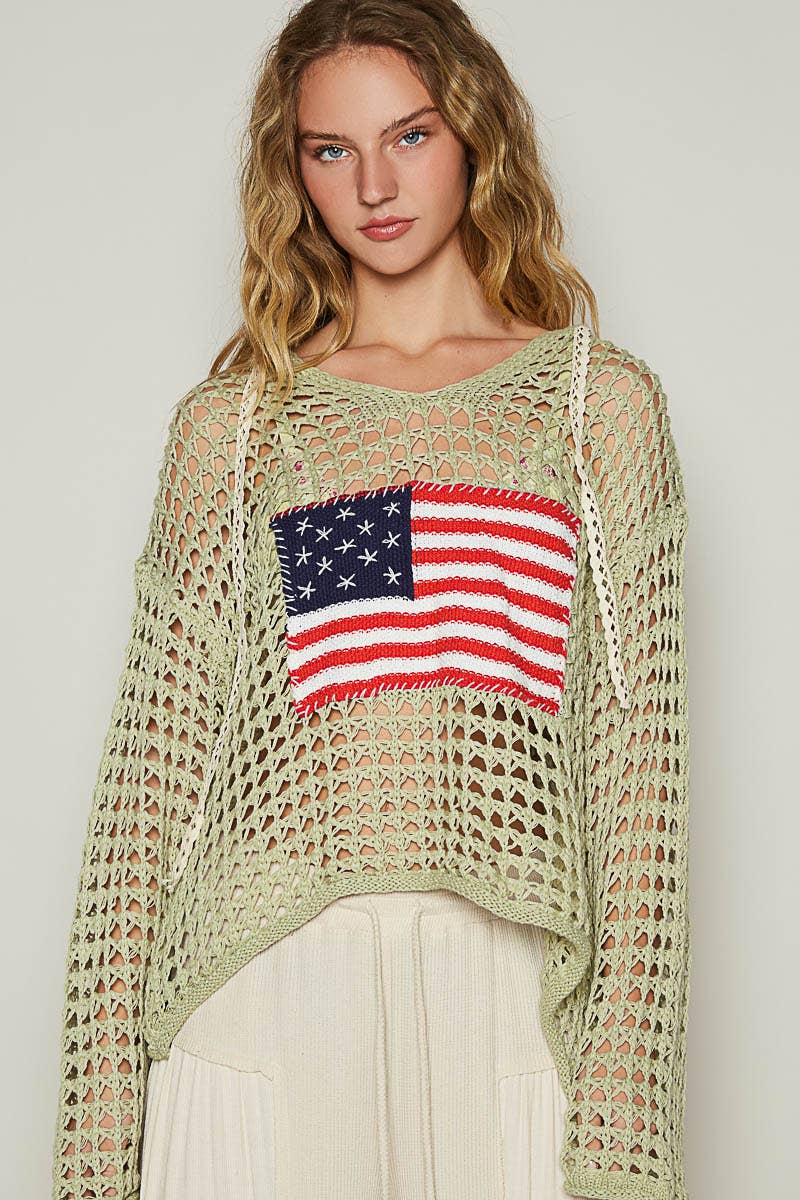 This sweater is a celebration of all things American. Show off your patriotic side with the American flag design, while enjoying the comfort and quality of the V-neck, long sleeve, and regular fit. Plus, the unique stitch point and rolling edge details add a touch of individuality. With a trim loop and solid color, this hoodie sweater is the perfect way to stay cozy and stylish.