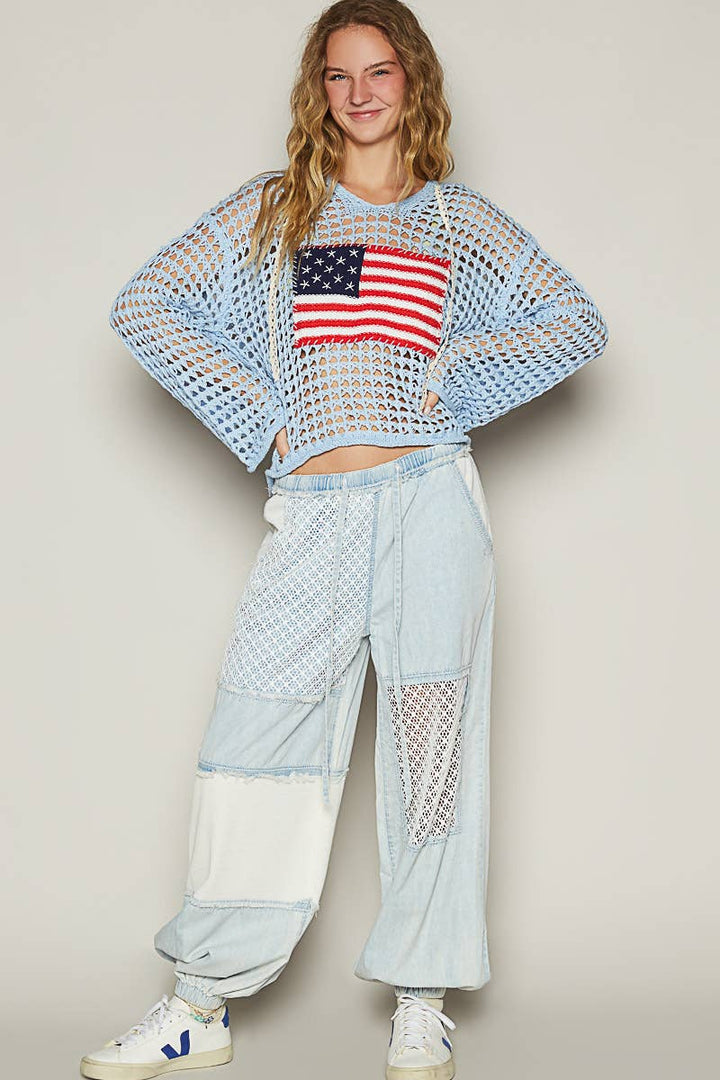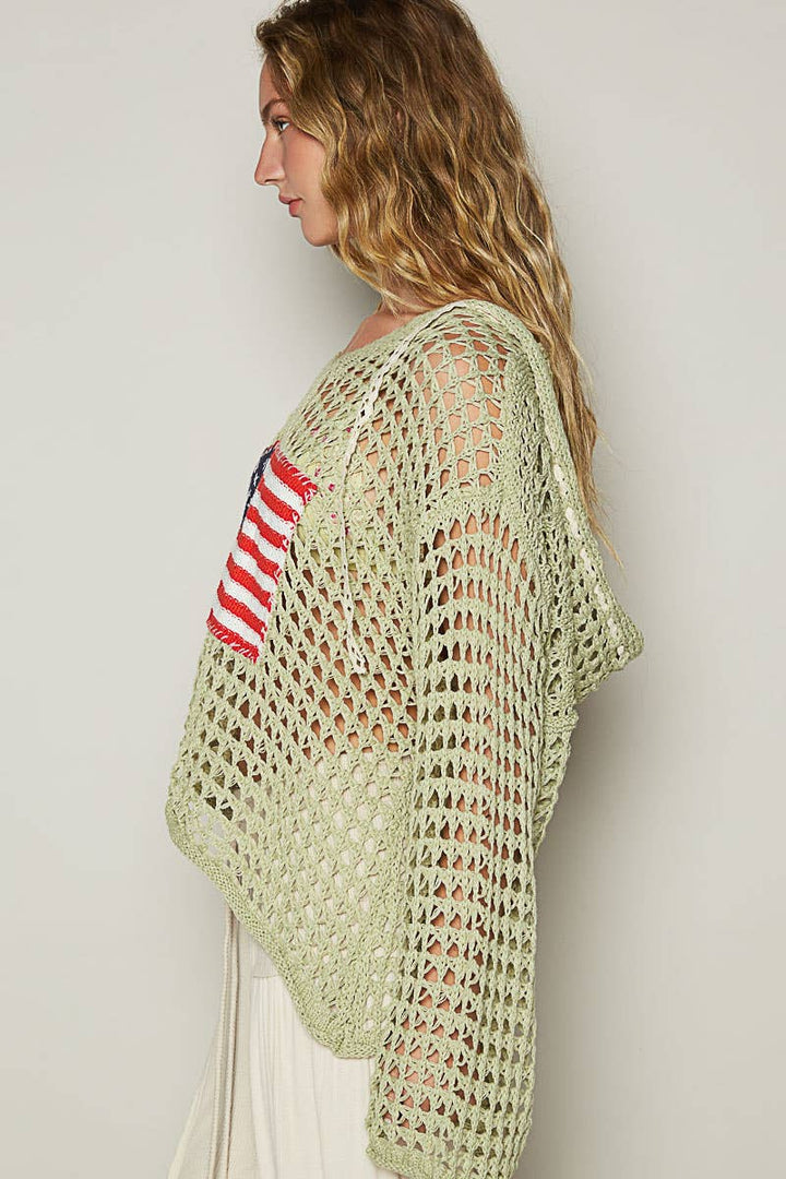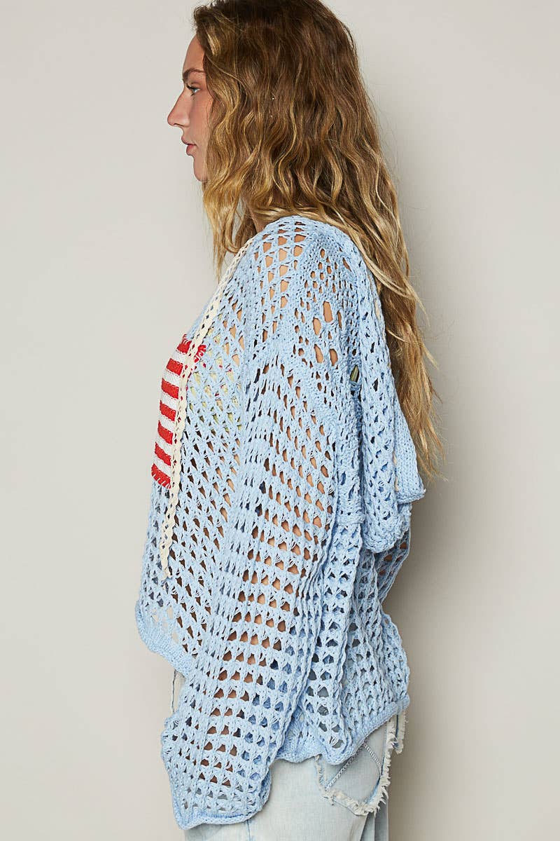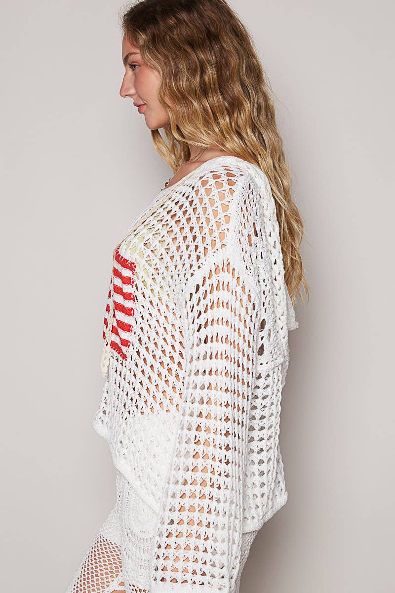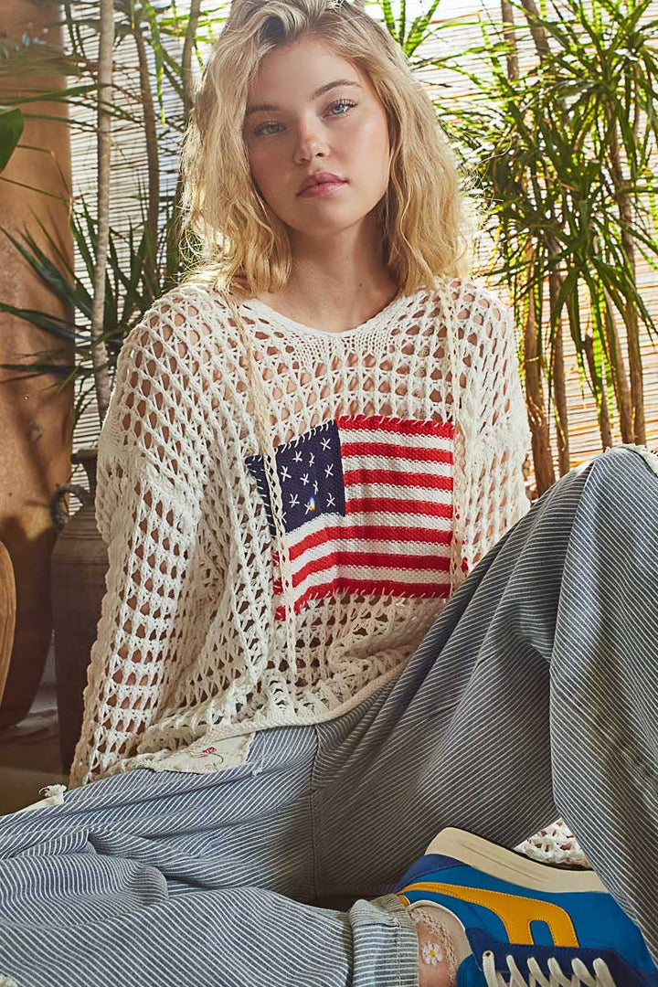 This sweater is a celebration of all things American. Show off your patriotic side with the American flag design, while enjoying the comfort and quality of the V-neck, long sleeve, and regular fit. Plus, the unique stitch point and rolling edge details add a touch of individuality. With a trim loop and solid color, this hoodie sweater is the perfect way to stay cozy and stylish.